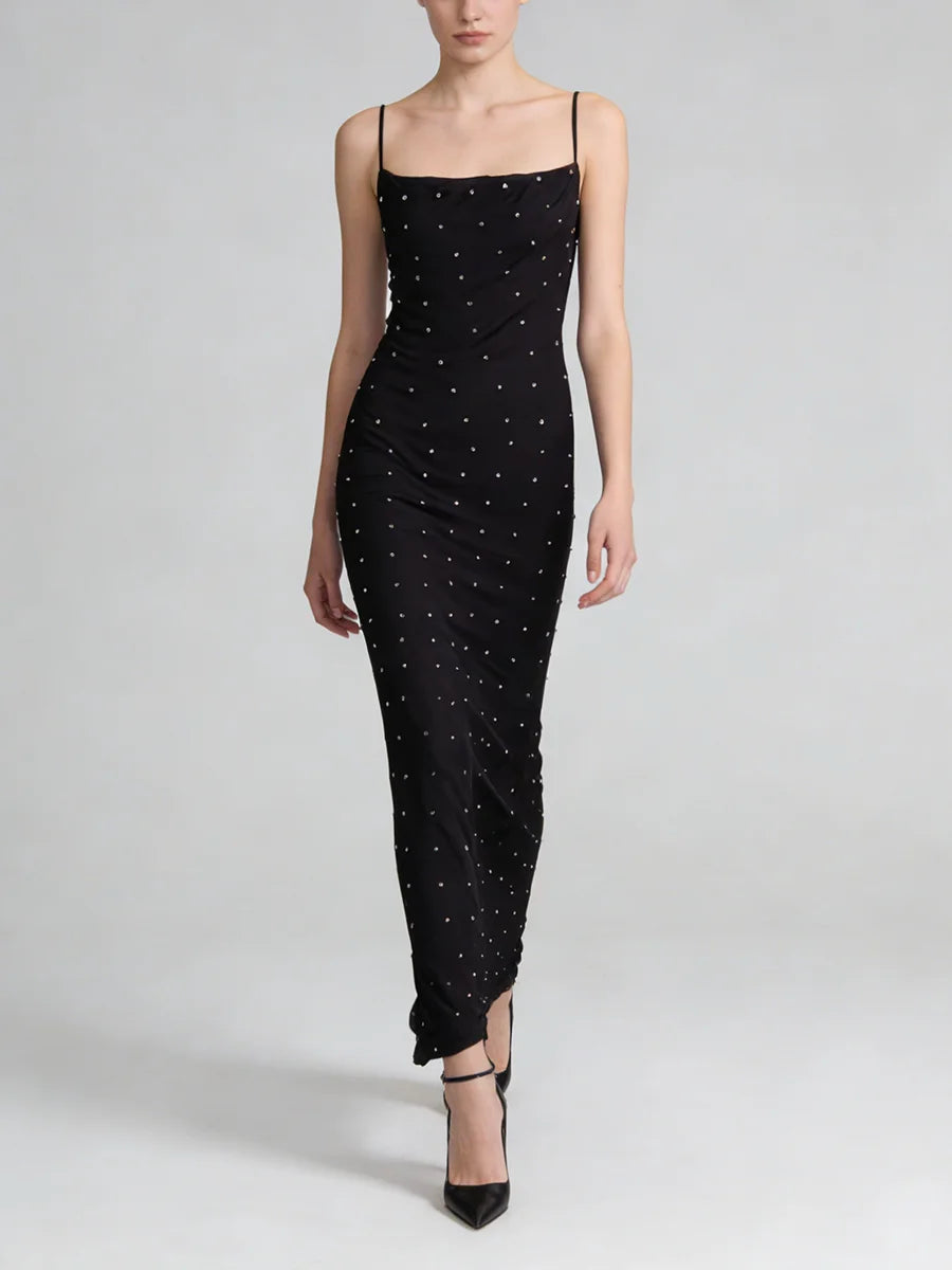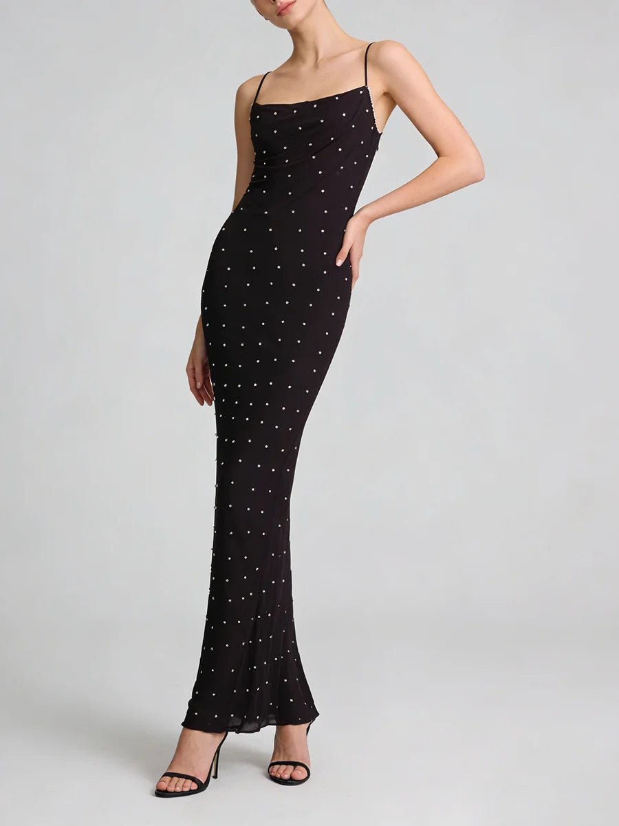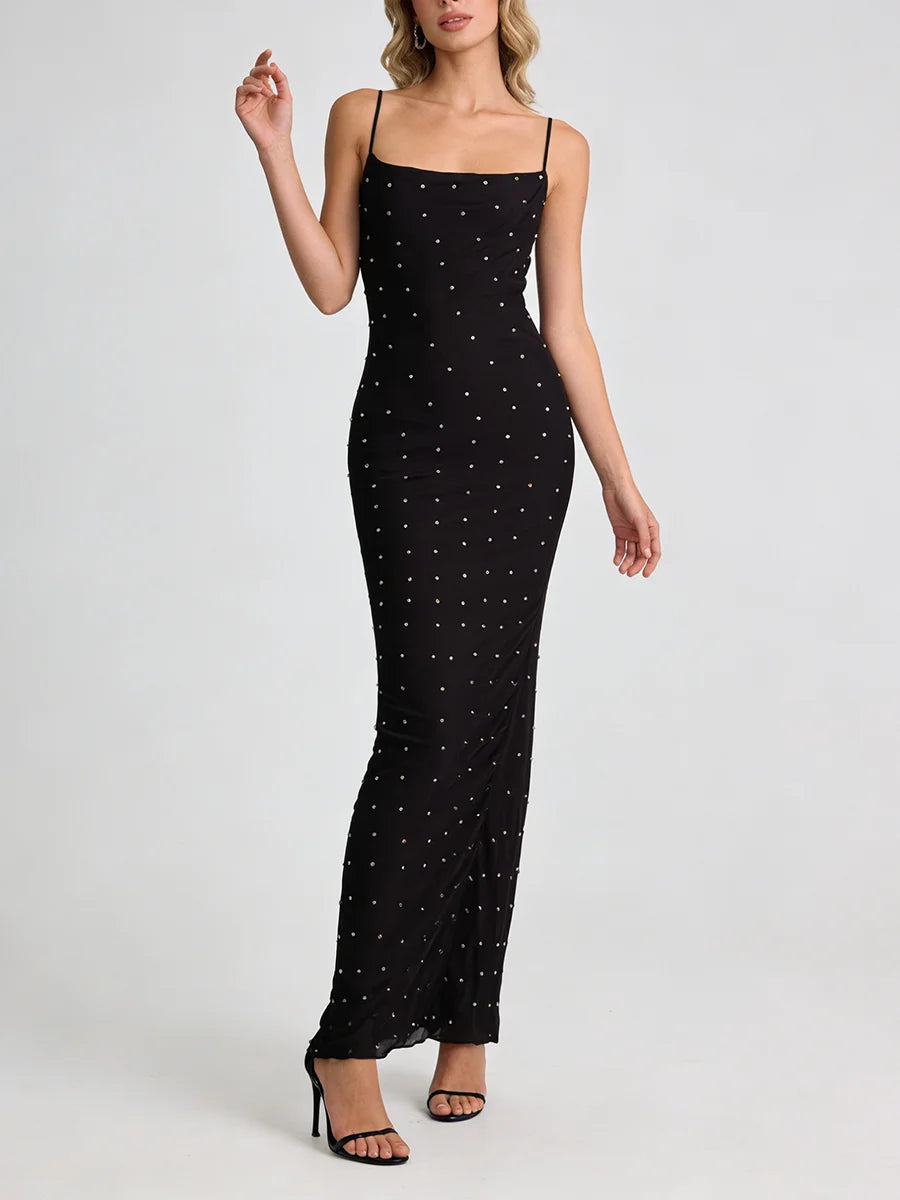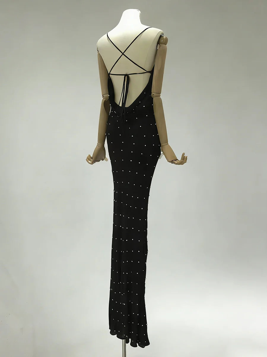 Trend4us Luxe Crystal-Studded Backless Slip Maxi Dress