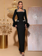Envision yourself making your grand entrance, the feather cuffs adding drama with every gesture, crystal trim shimmering brilliantly under the lights, and the mermaid silhouette creating a stunning hourglass shape. You move with confidence and grace, knowing you're the most glamorous person in the room. This gown doesn't just dress you—it transforms you into a vision of luxury.