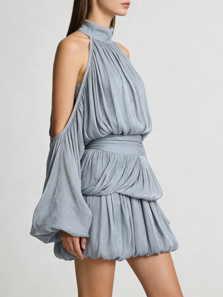 Trend4us Luxe Draped Cold-Shoulder High-Neck Mini Dress