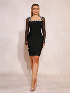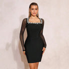 Imagine stepping into the party, the mesh sleeves adding an air of mystery, crystals shimmering brilliantly under the lights, and floral details creating a romantic, feminine aesthetic. The fitted silhouette flatters your figure perfectly, and you feel confident, glamorous, and absolutely unforgettable. This dress doesn't just make you look stunning—it makes you feel like the star of the evening.