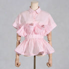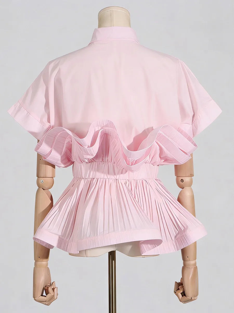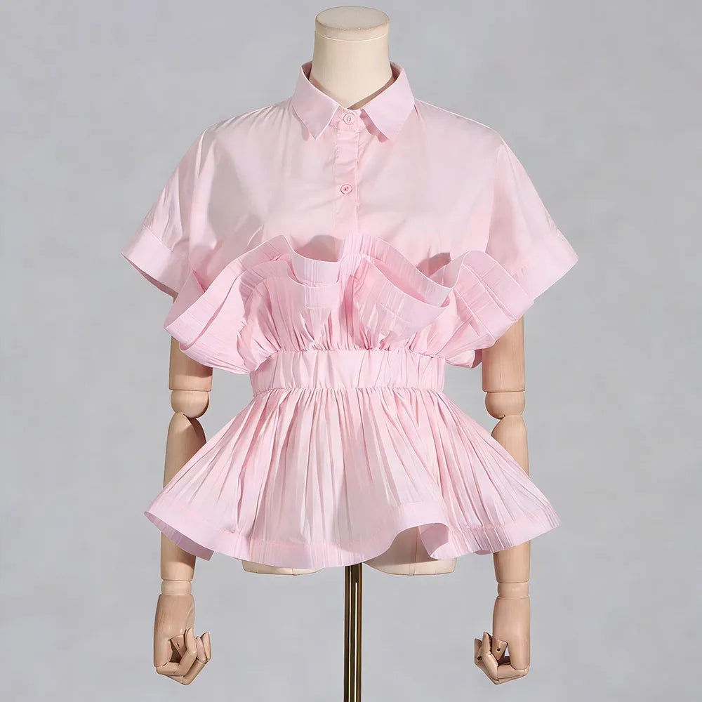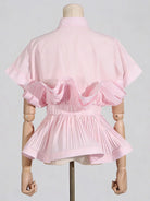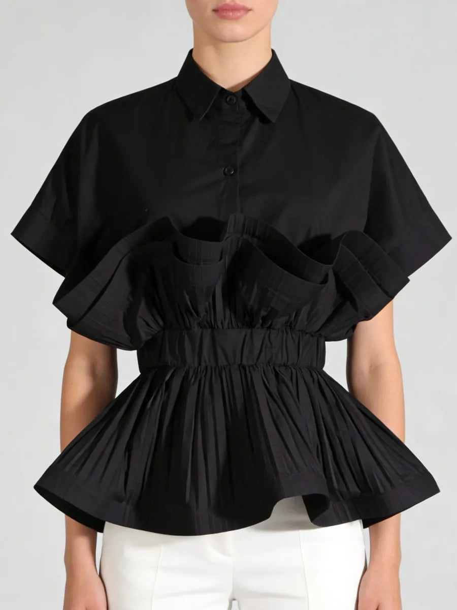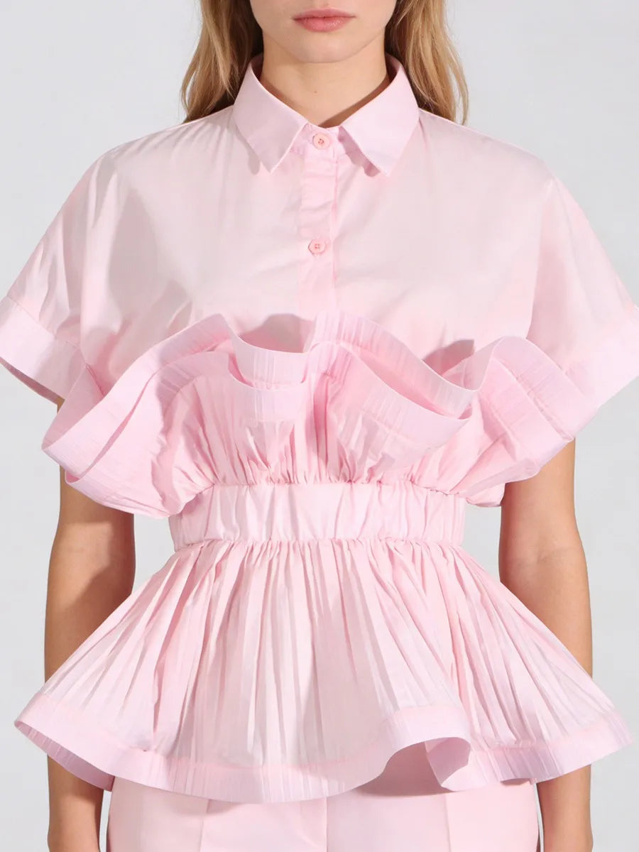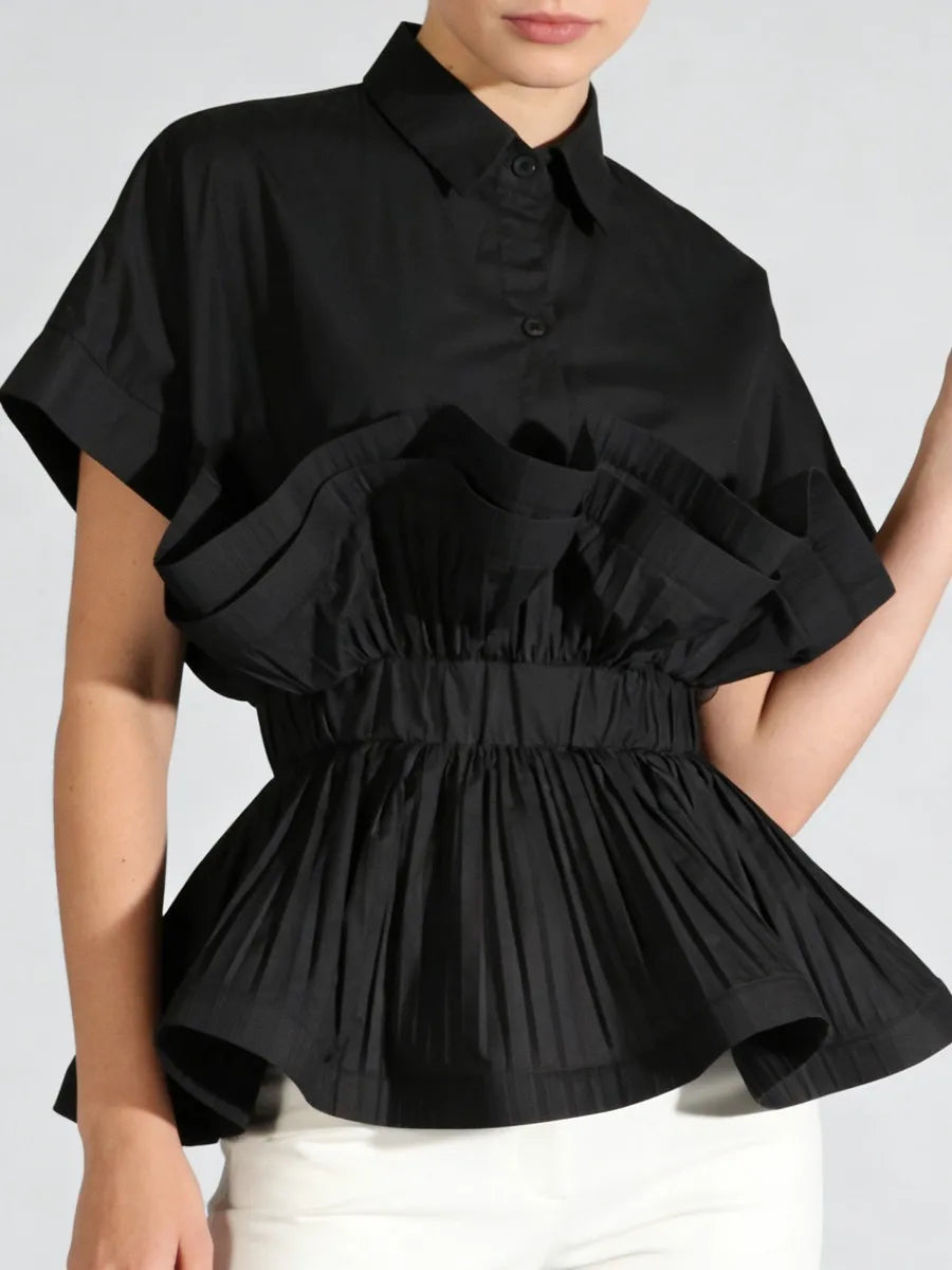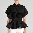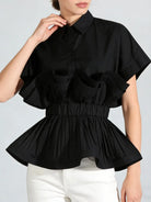 Trend4us Luxe Structured Ruffle Peplum Button-Up Blouse