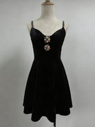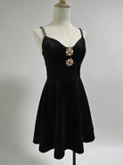 Crafted from premium polyester velvet with slight stretch that offers comfortable movement while maintaining a sleek silhouette. The slim-fit design follows your curves without clinging, creating a refined, flattering effect. The velvet fabric feels soft and luxurious against the skin, while the jewel embellishments add texture and sparkle. The empire waistline provides definition while the mini length creates a modern, youthful proportion.