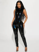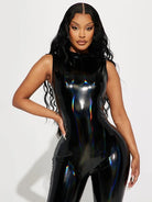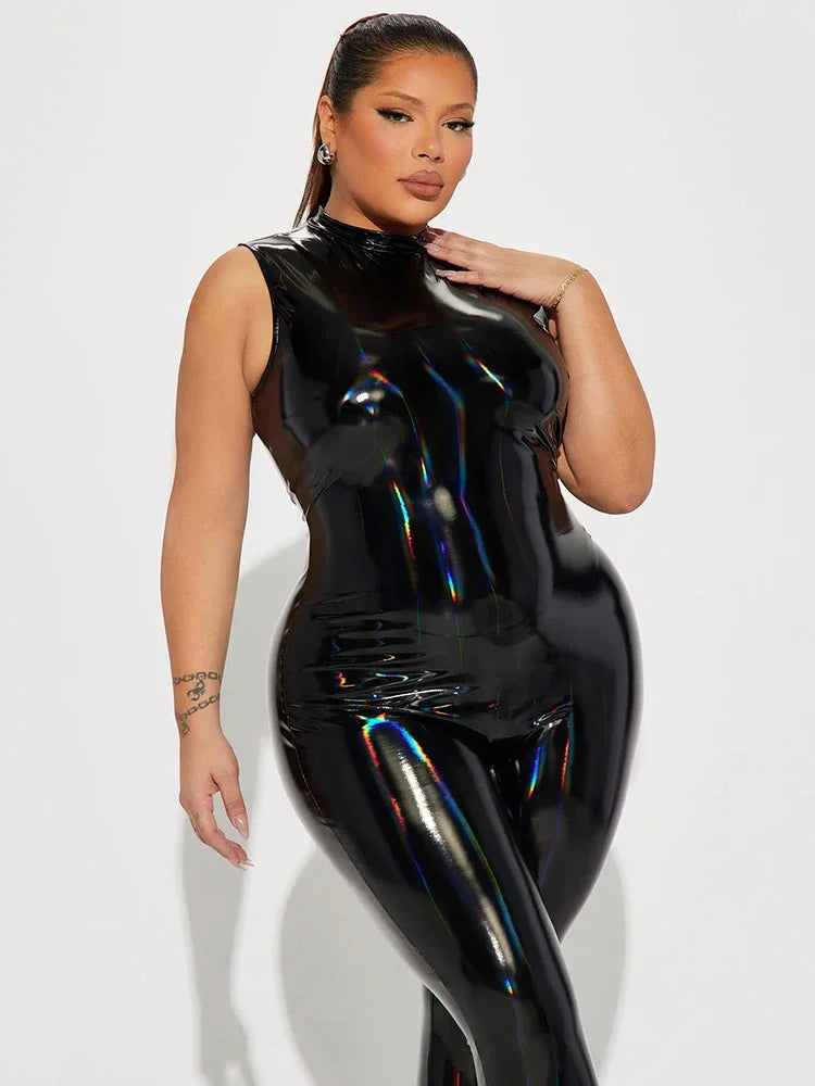 Trend4us Plus Size Patent Leather Glossy Sculpted Jumpsuit