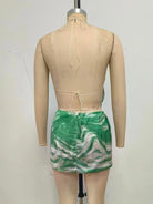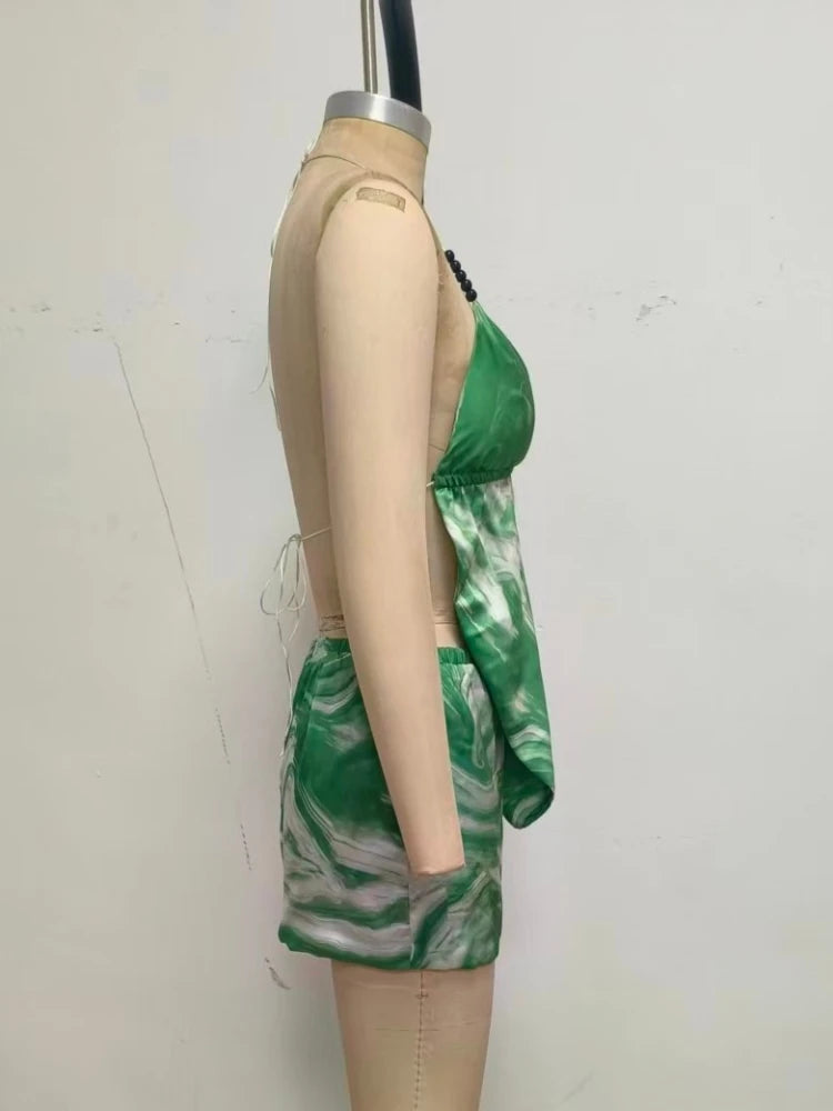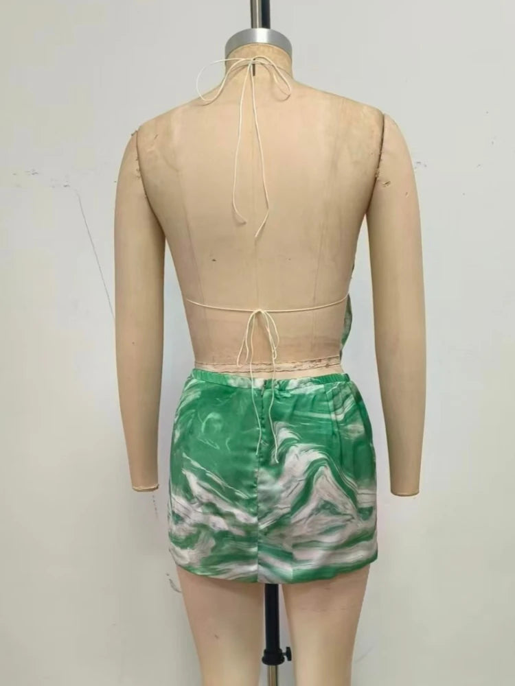 Trend4us Printed Halter Backless Top & Skirt Two-Piece Set