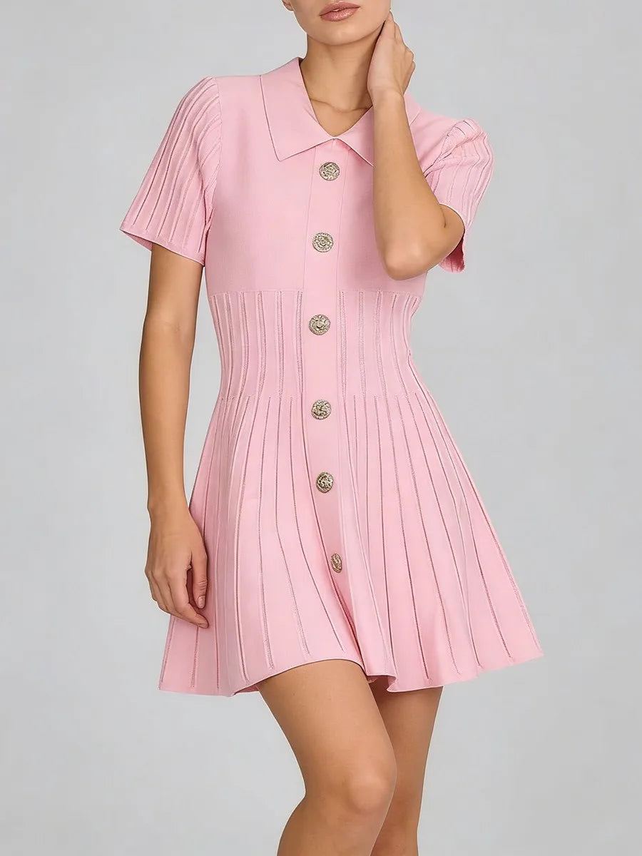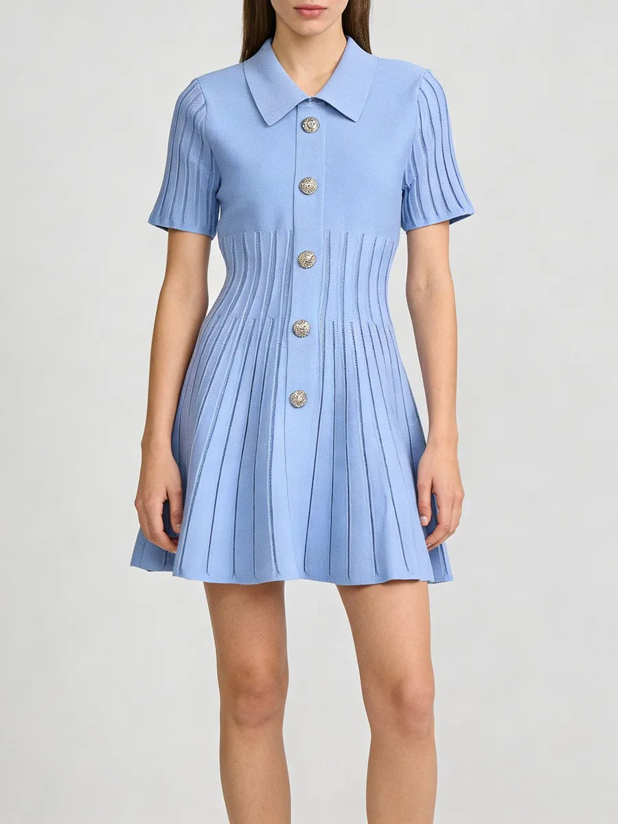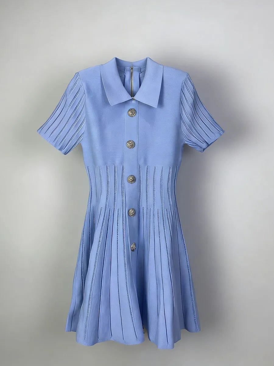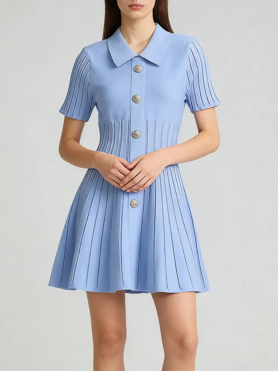 Trend4us Sculpted Collared Pleated Knit Mini Dress
