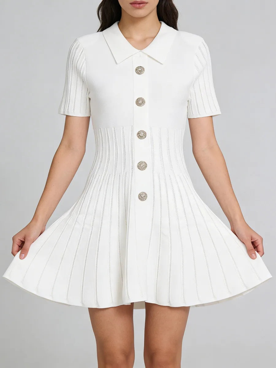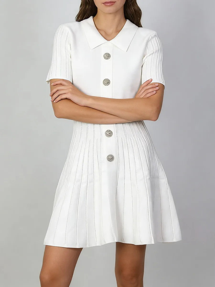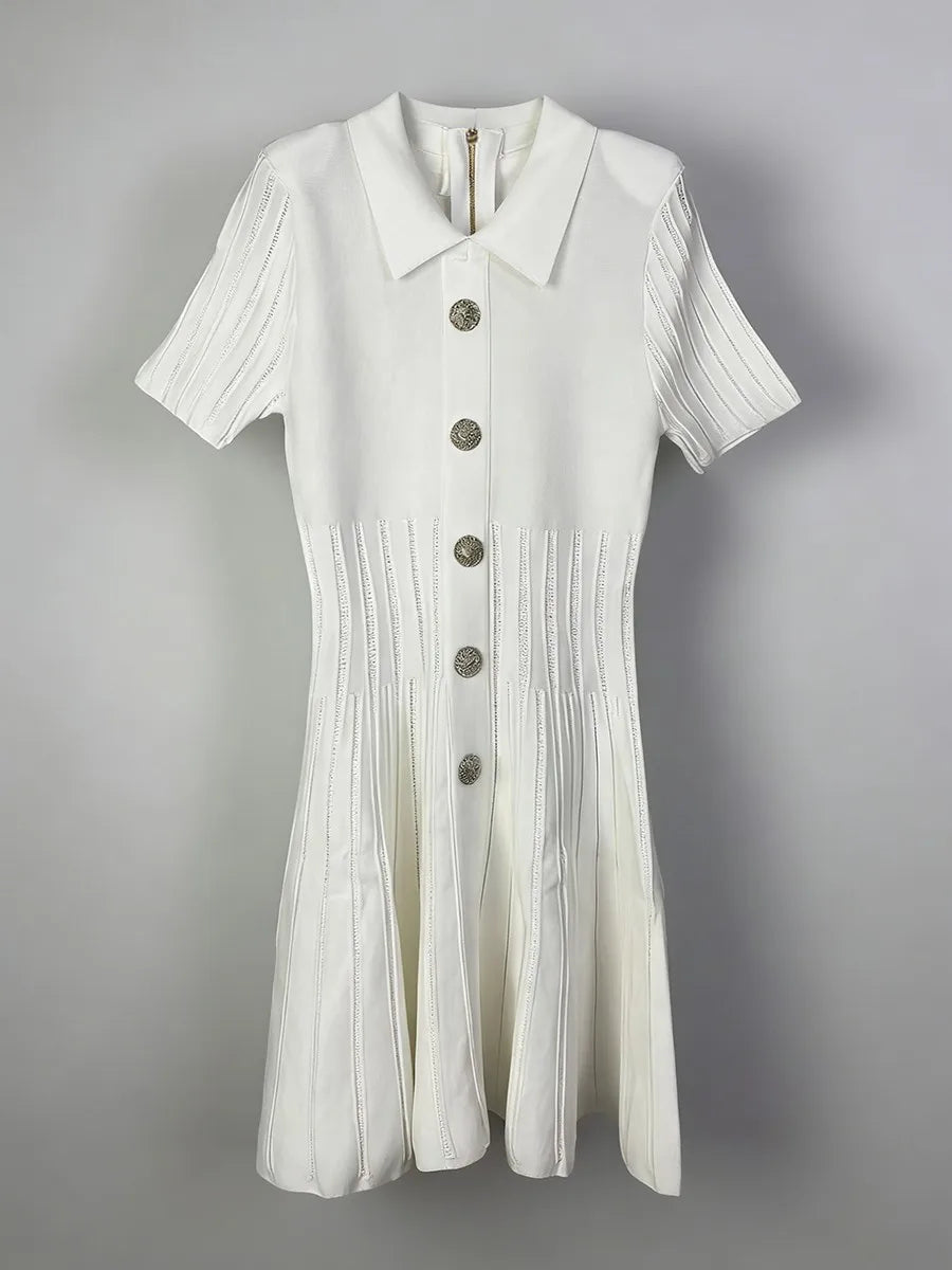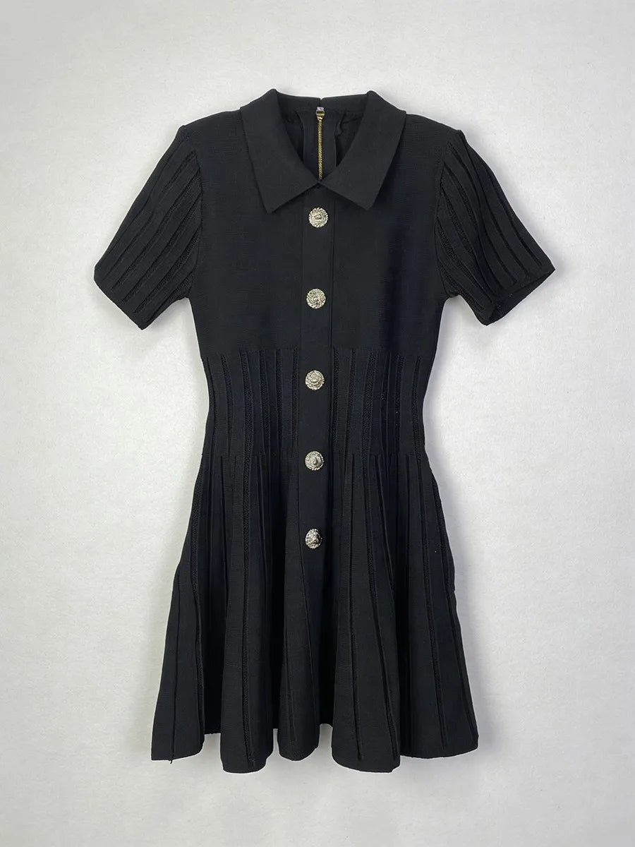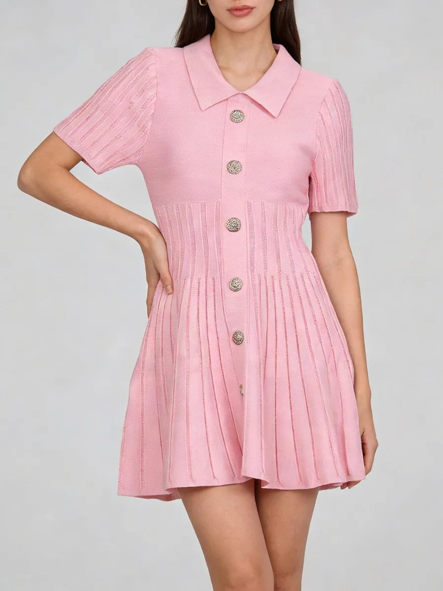 Trend4us Sculpted Collared Pleated Knit Mini Dress