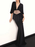 Trend4us Sheer Draped Plunge Sequin Waist Mermaid Gown