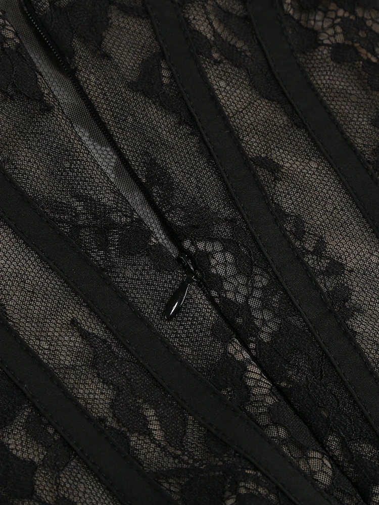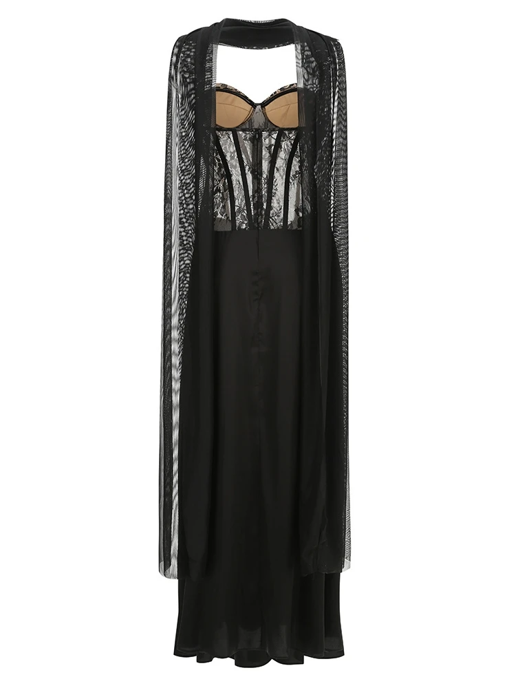 Trend4us Strapless Sheer Lace Corset Chiffon Shawl Maxi Gown