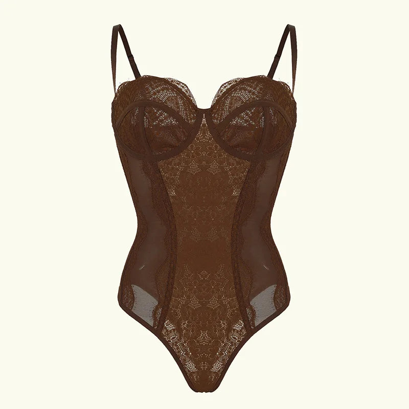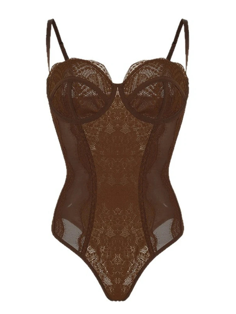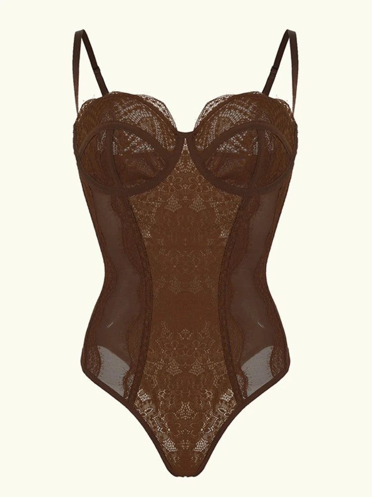 Trend4us Vintage Lace Sculpting Underwire Mesh Bodysuit