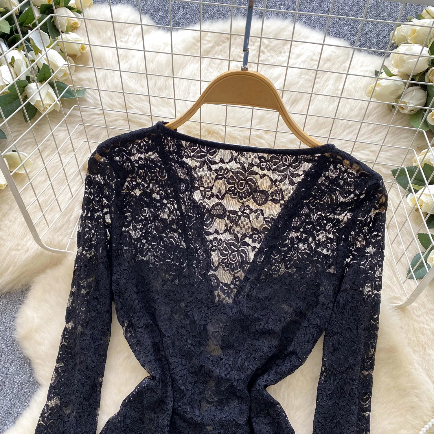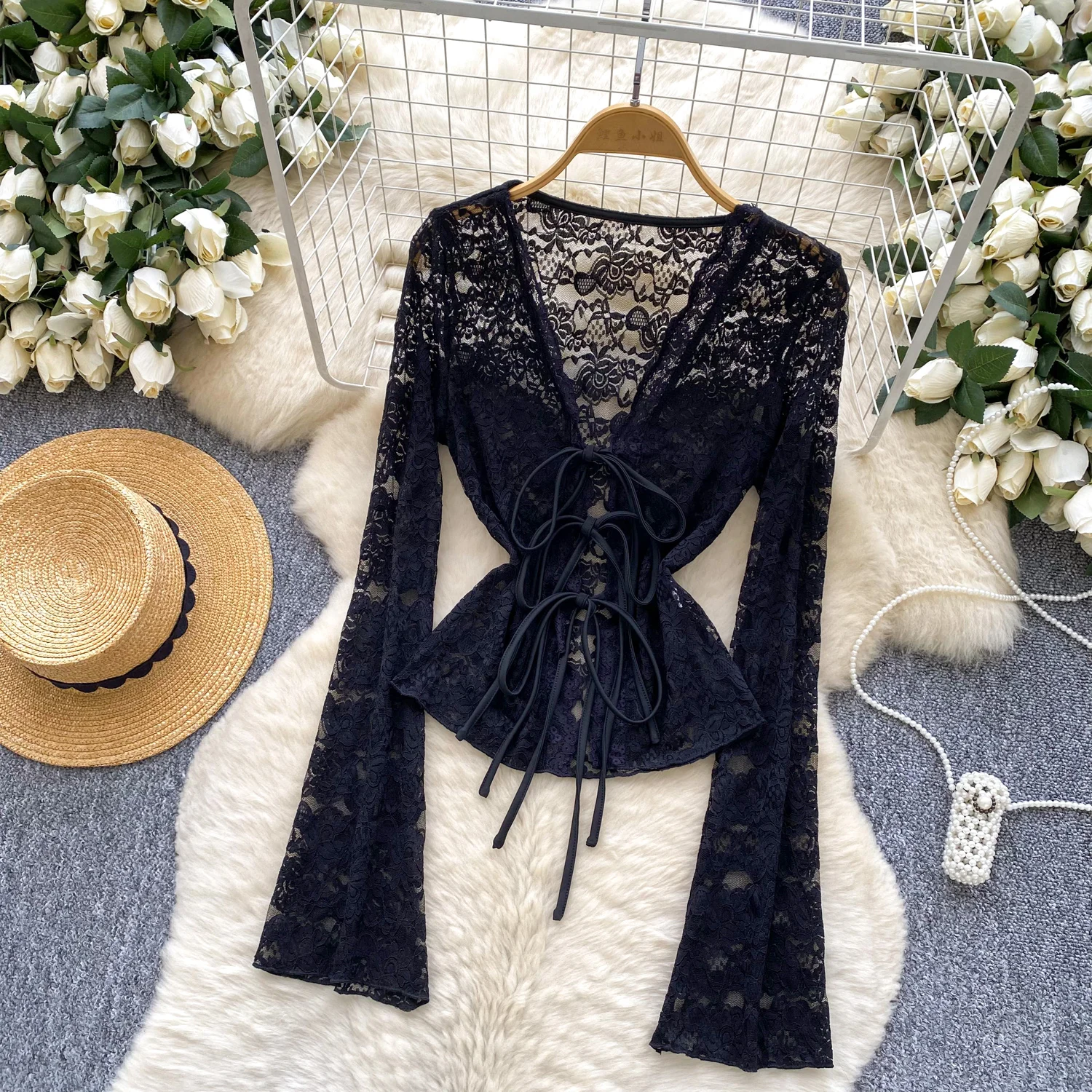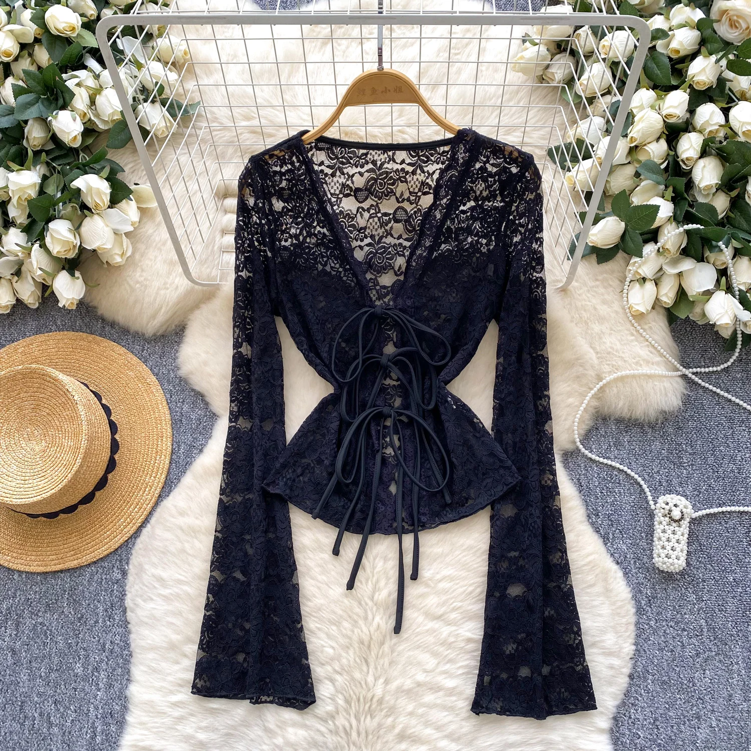 Bold, refined, and statement-driven, the Trend4us Vintage Lace-Up Sheer Lace Long Sleeve Blouse delivers elevated vintage energy with a modern edge. Crafted from intricate sheer lace, this blouse features a deep V-neckline with adjustable lace-up detailing.