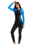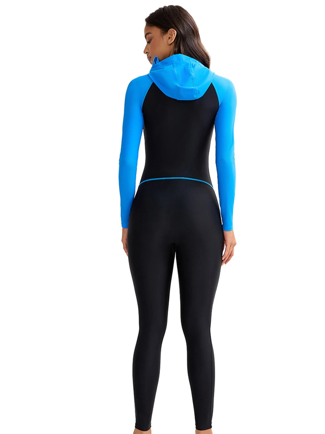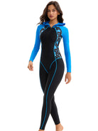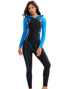 Trend4us Zip-Front Hooded Colorblock Surfing Jumpsuit