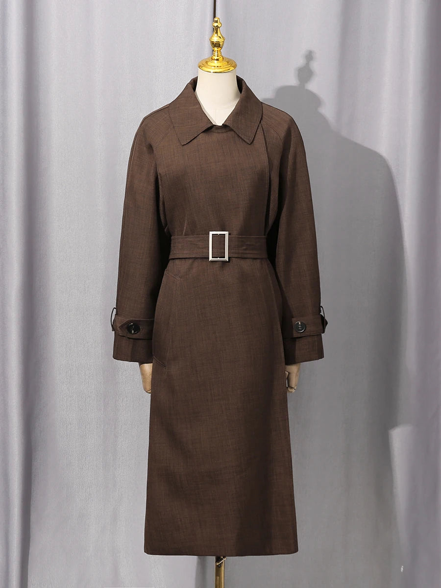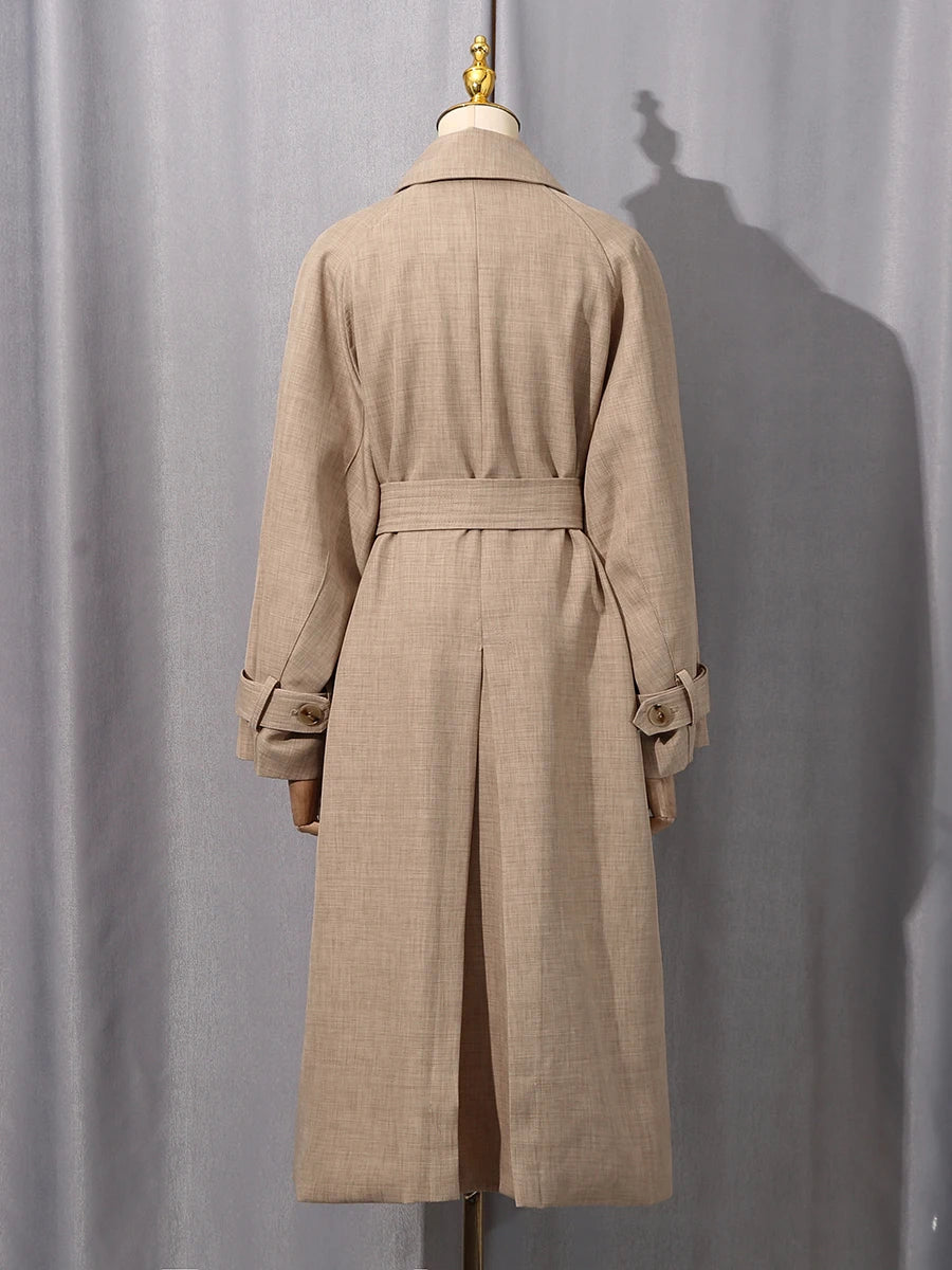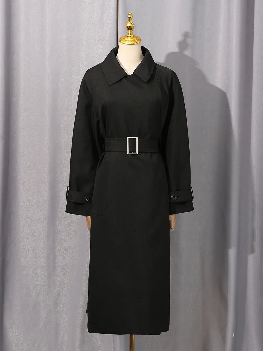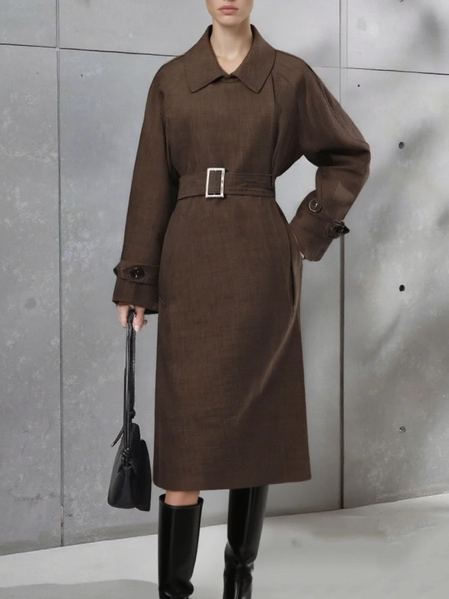 Trend4us Elegant Belted Longline Trench Coat
