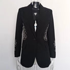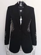 Elevate your wardrobe with the Trend4us Luxe Crystal Spliced Embellished Blazer — a striking fusion of modern tailoring and opulent detailing. This expertly crafted blazer features a structured silhouette with precision-cut lines that contour the body, creating a flattering and empowered fit.