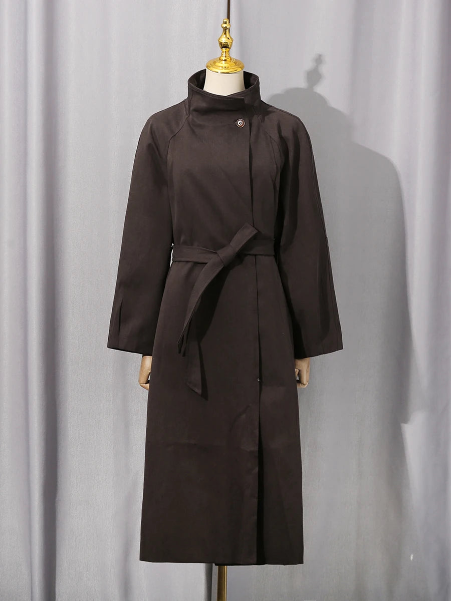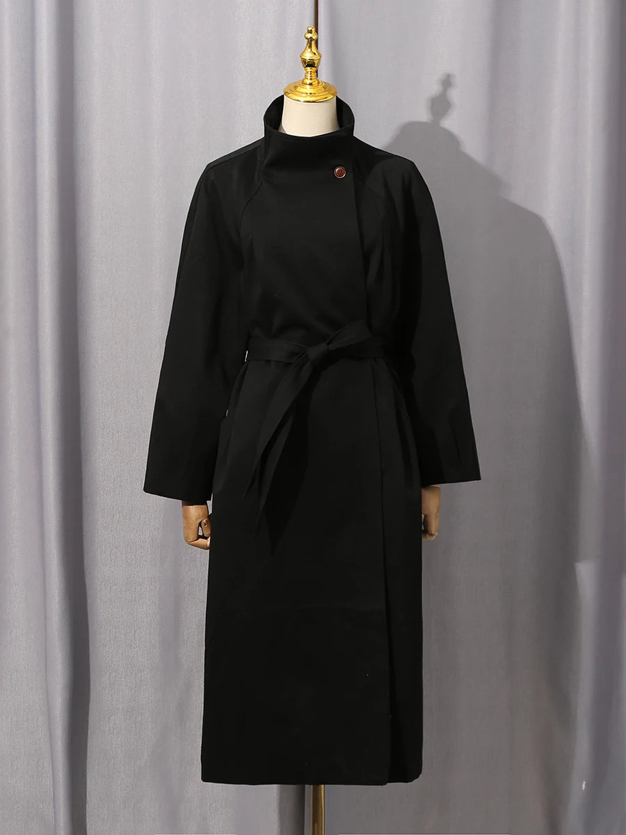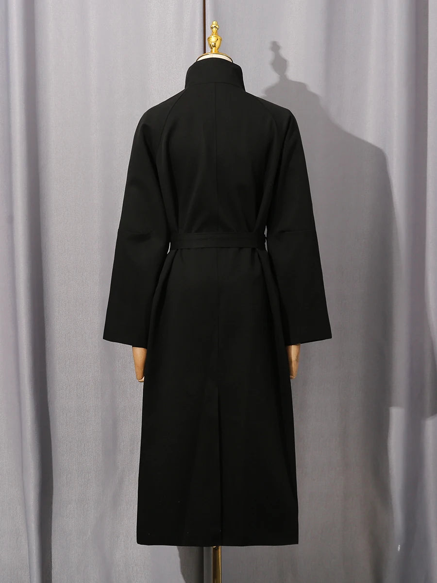 Trend4us Minimalist High-Collar Belted Longline Coat
