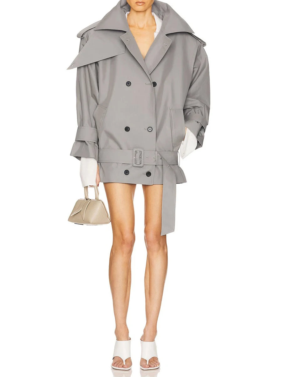 Elevate your streetwear edge with the Trend4us Oversized Double-Breasted Trench Coat, a bold reimagining of the timeless classic. Featuring an exaggerated oversized silhouette with dropped shoulders, wide lapels, and a dramatic high collar, this coat blends sophistication with modern flair. The double-breasted front, epaulette detailing, and adjustable belted hemline create a structured yet relaxed vibe, perfect for layering or wearing solo as a statement coat dress. Designed for the fashion-forward woman, it’s the ultimate blend of chic minimalism and contemporary luxury.