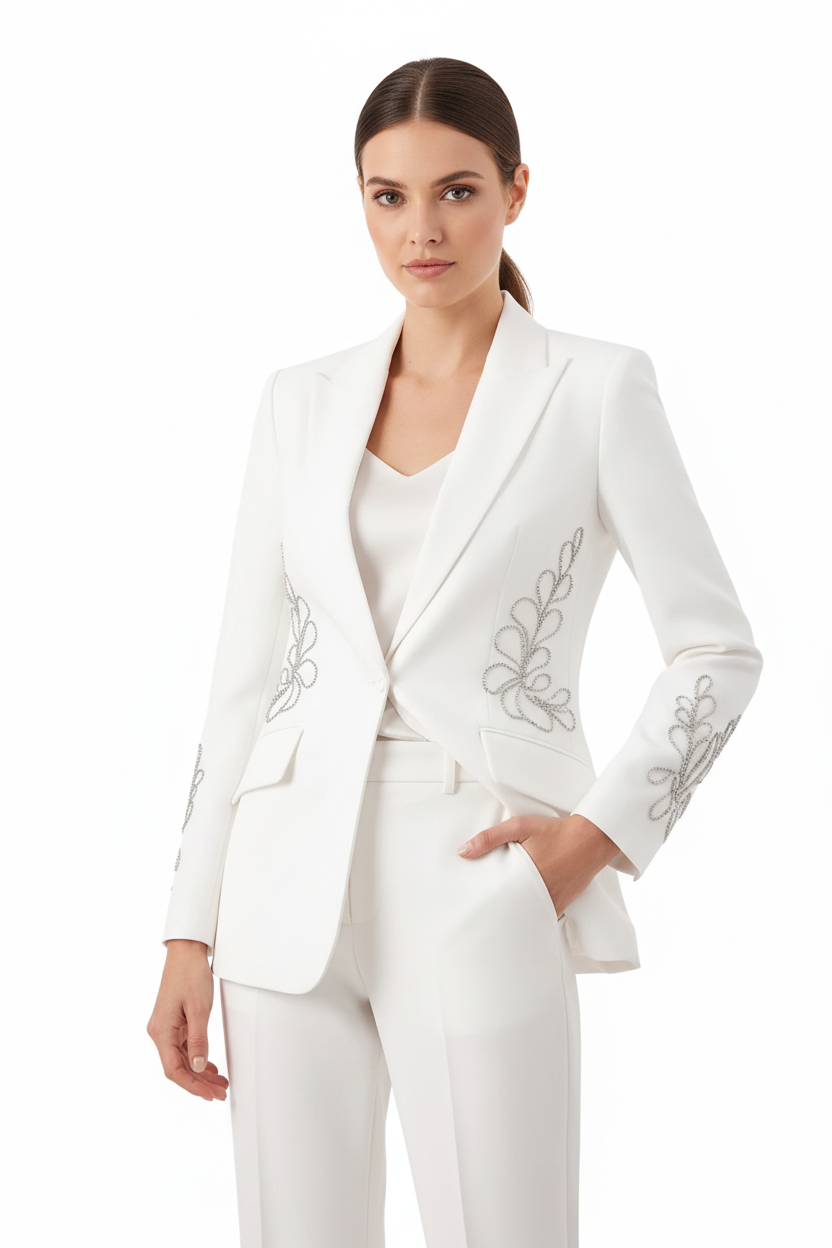 Women's Crystal Embellished Blazer | Spliced Detail Jacket