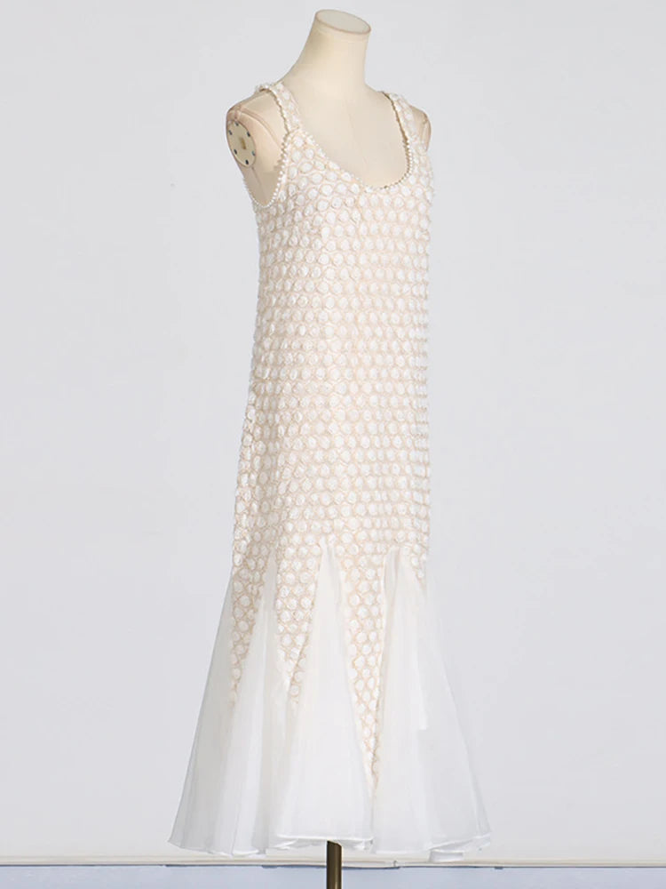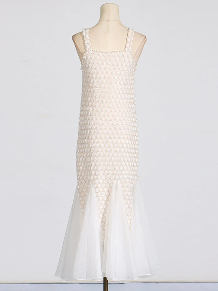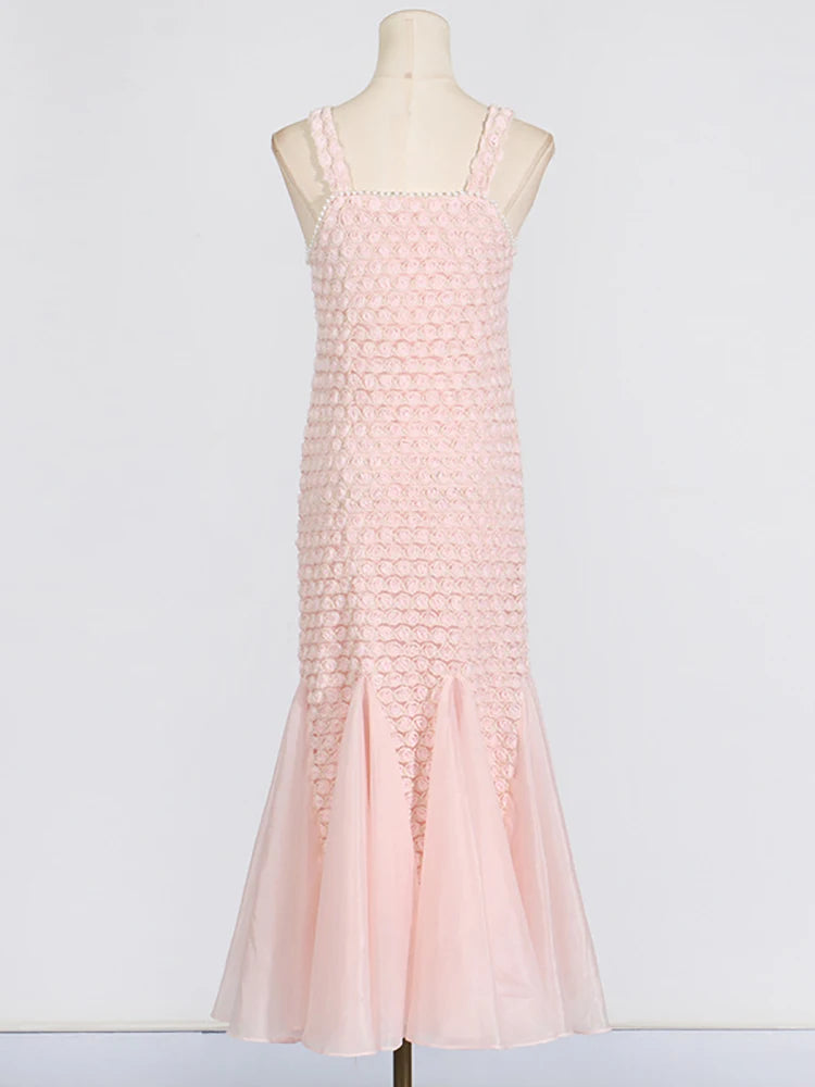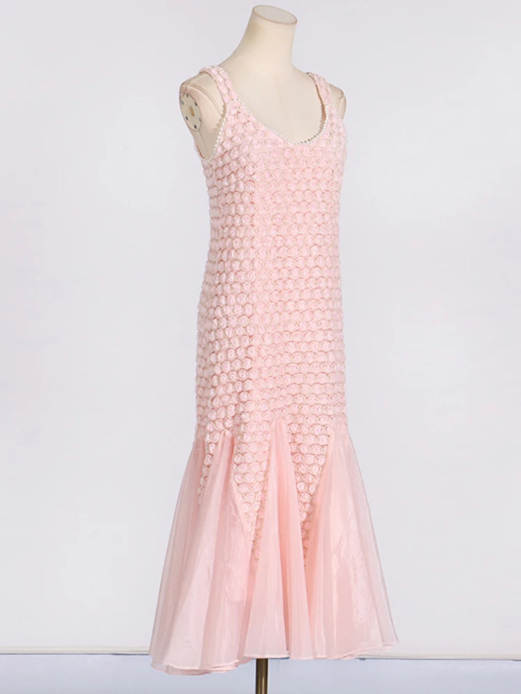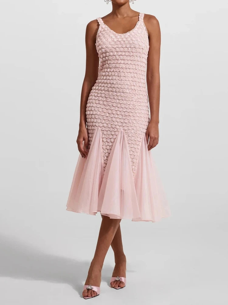 Trend4us Luxe 3D Rosette Mesh Panel Midi Dress