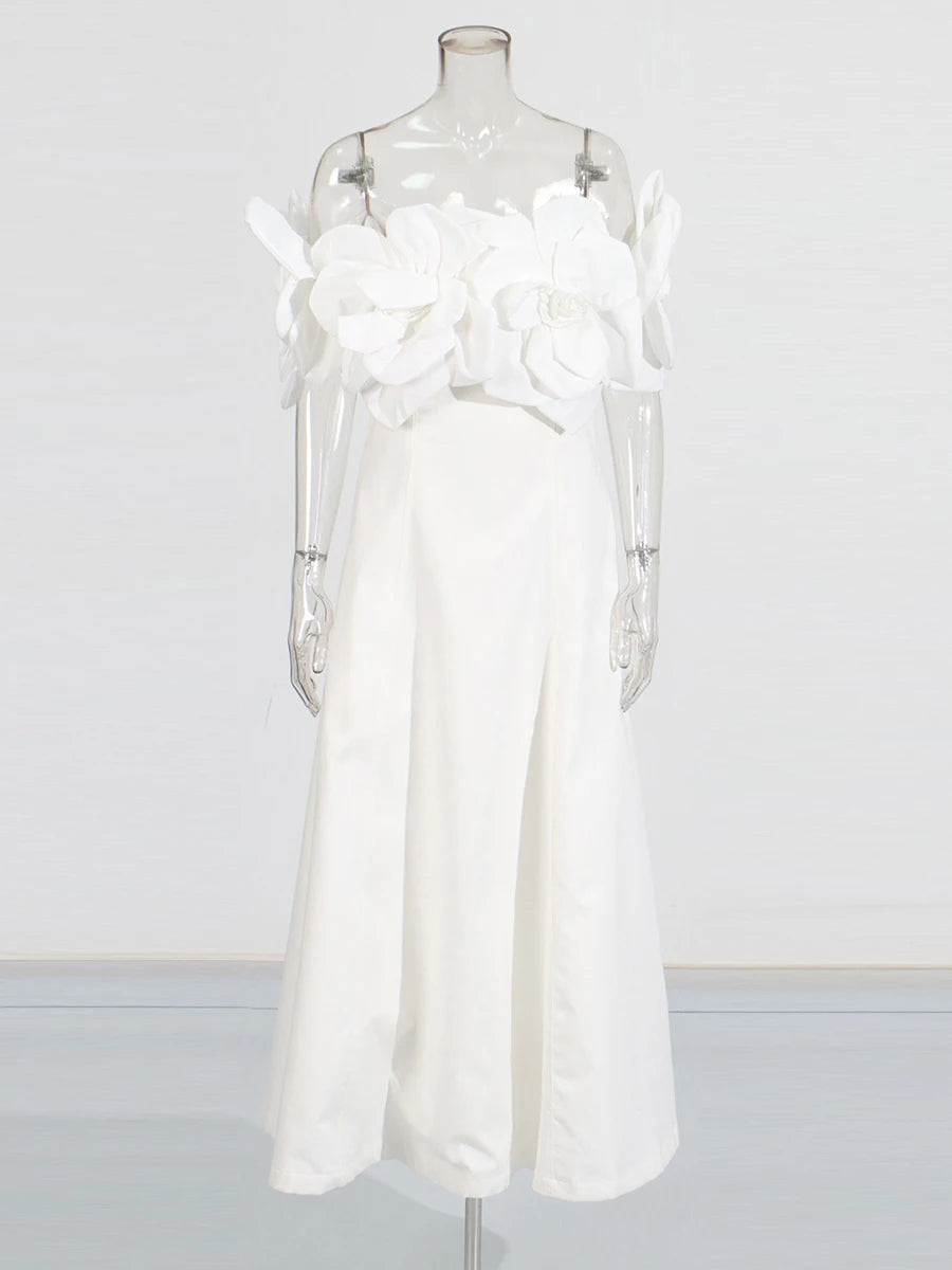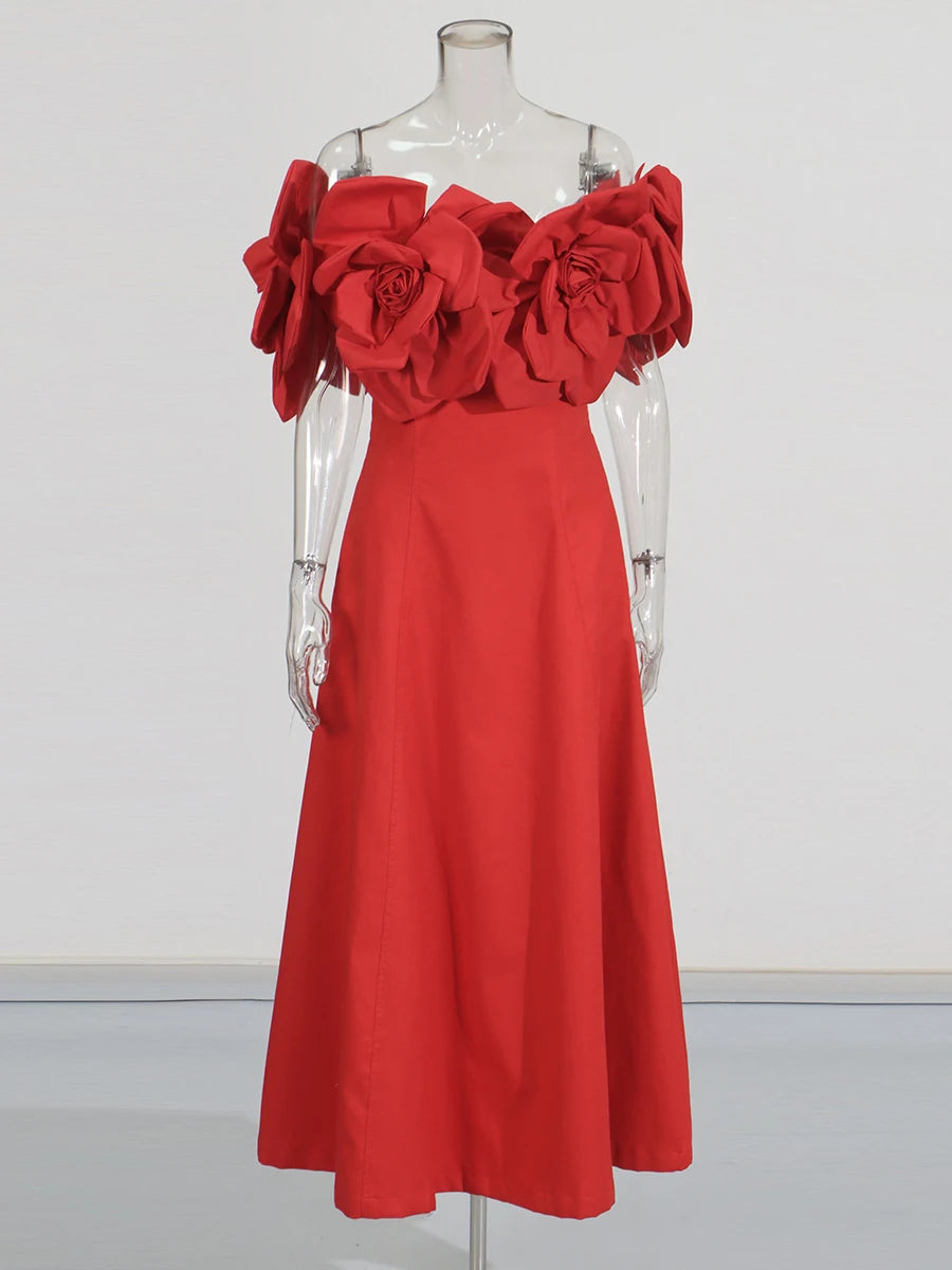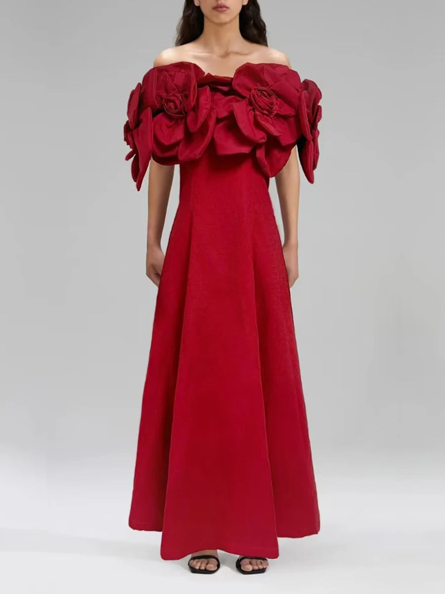 Trend4us Luxe 3D Floral Off-Shoulder Maxi Dress