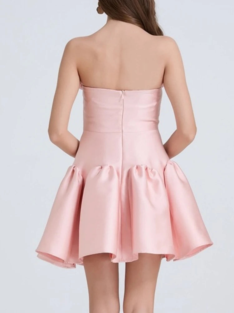 Trend4us Strapless Satin Bow Back Prom Mini Dress