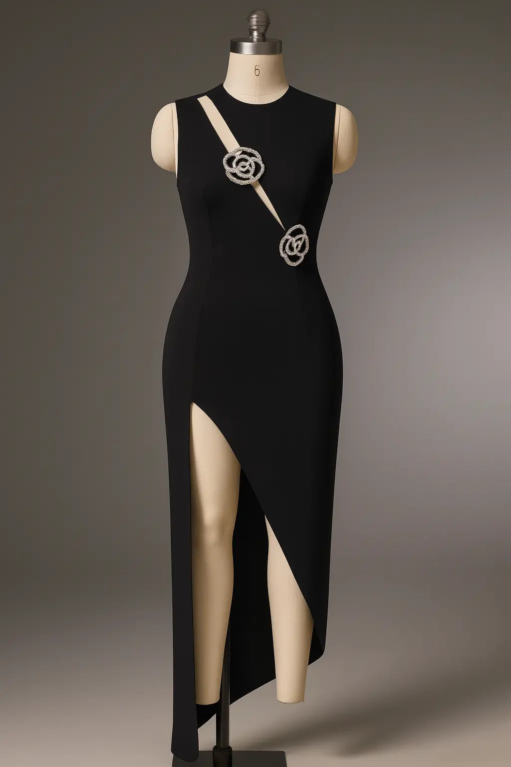 Trend4us Luxe Crystal Cutout Asymmetrical Slit Gown