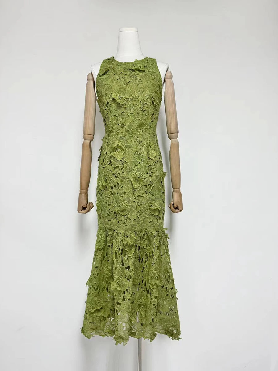 Trend4us Floral Lace Sleeveless Midi Dress