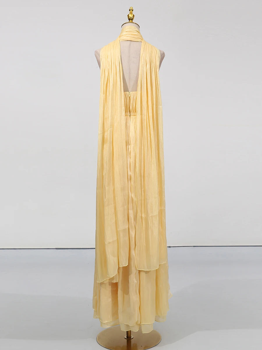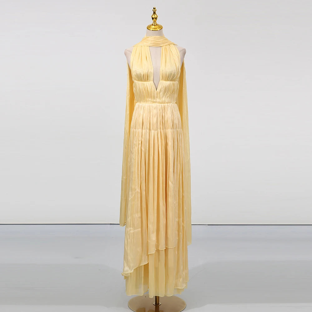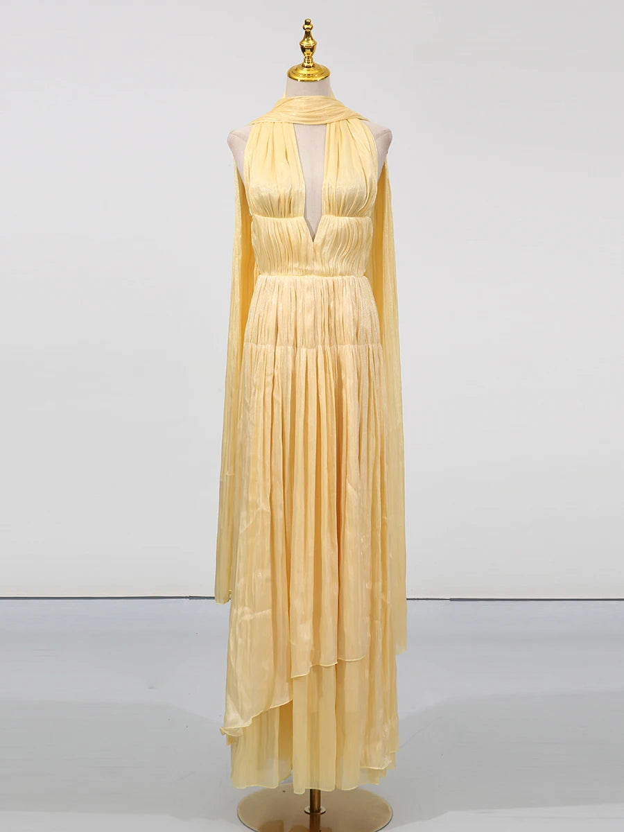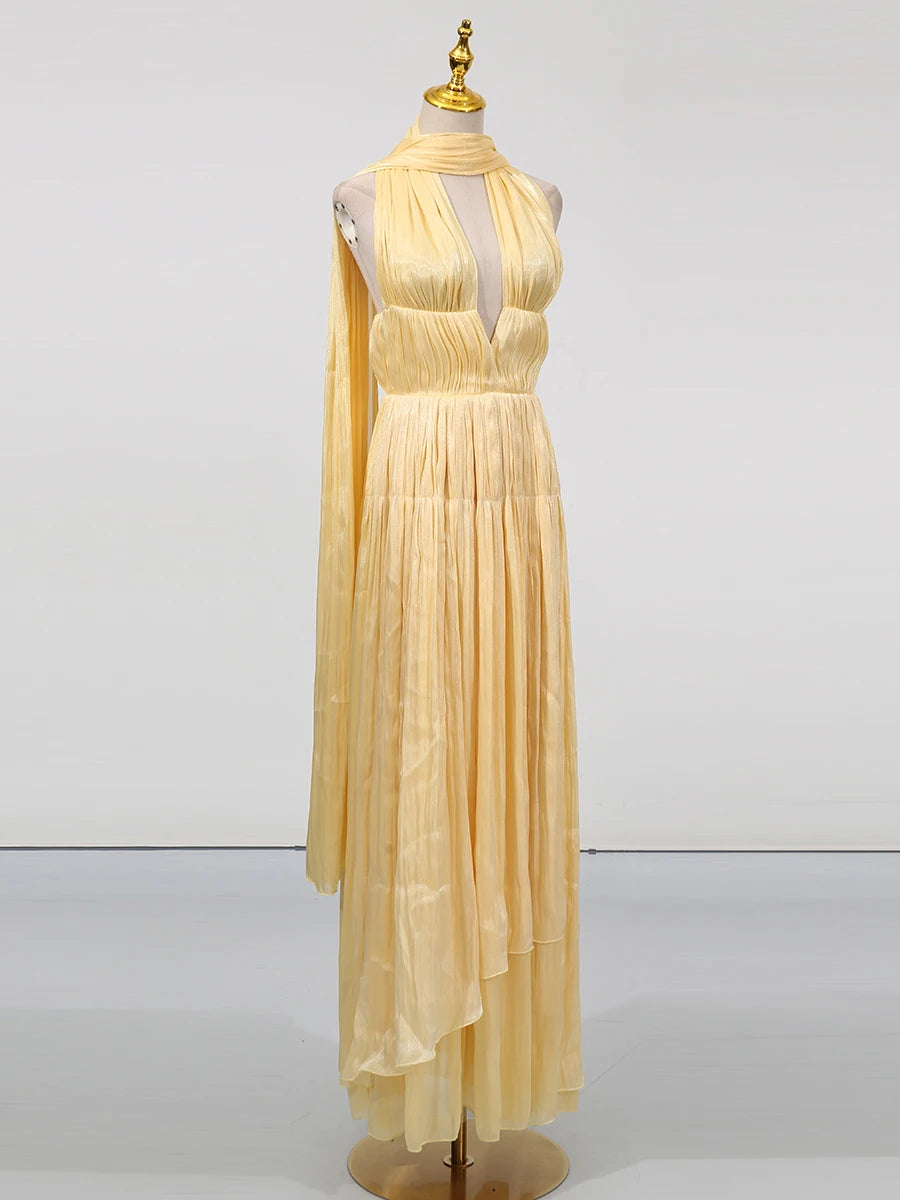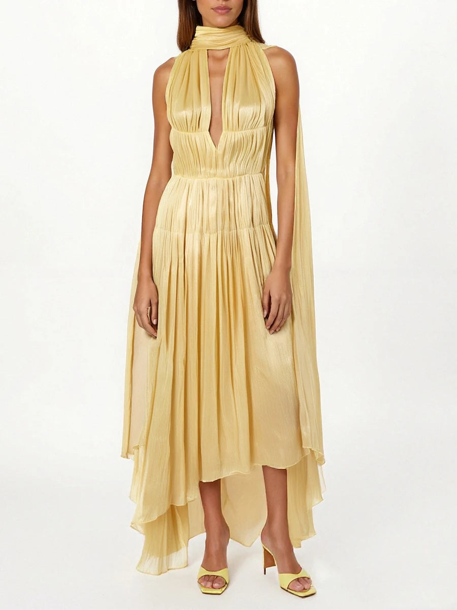 Trend4us Luxe Pleated Maxi Dress with Scarf