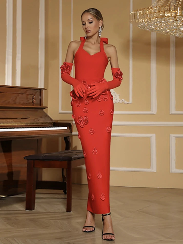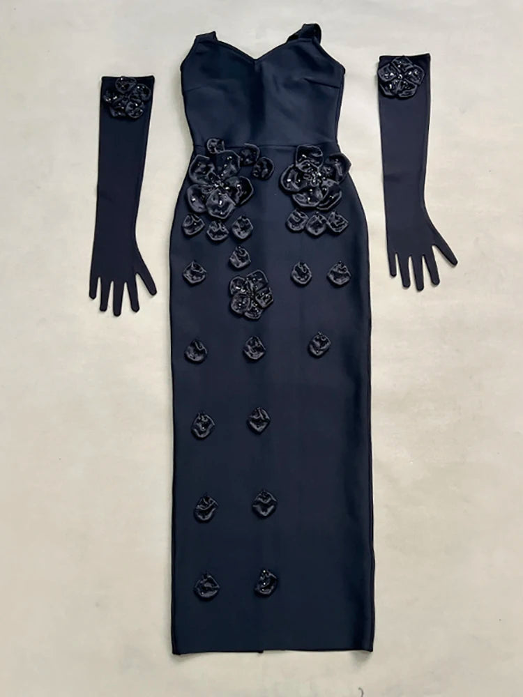 Trend4us Luxe 3D Floral Embellished Gown with Gloves