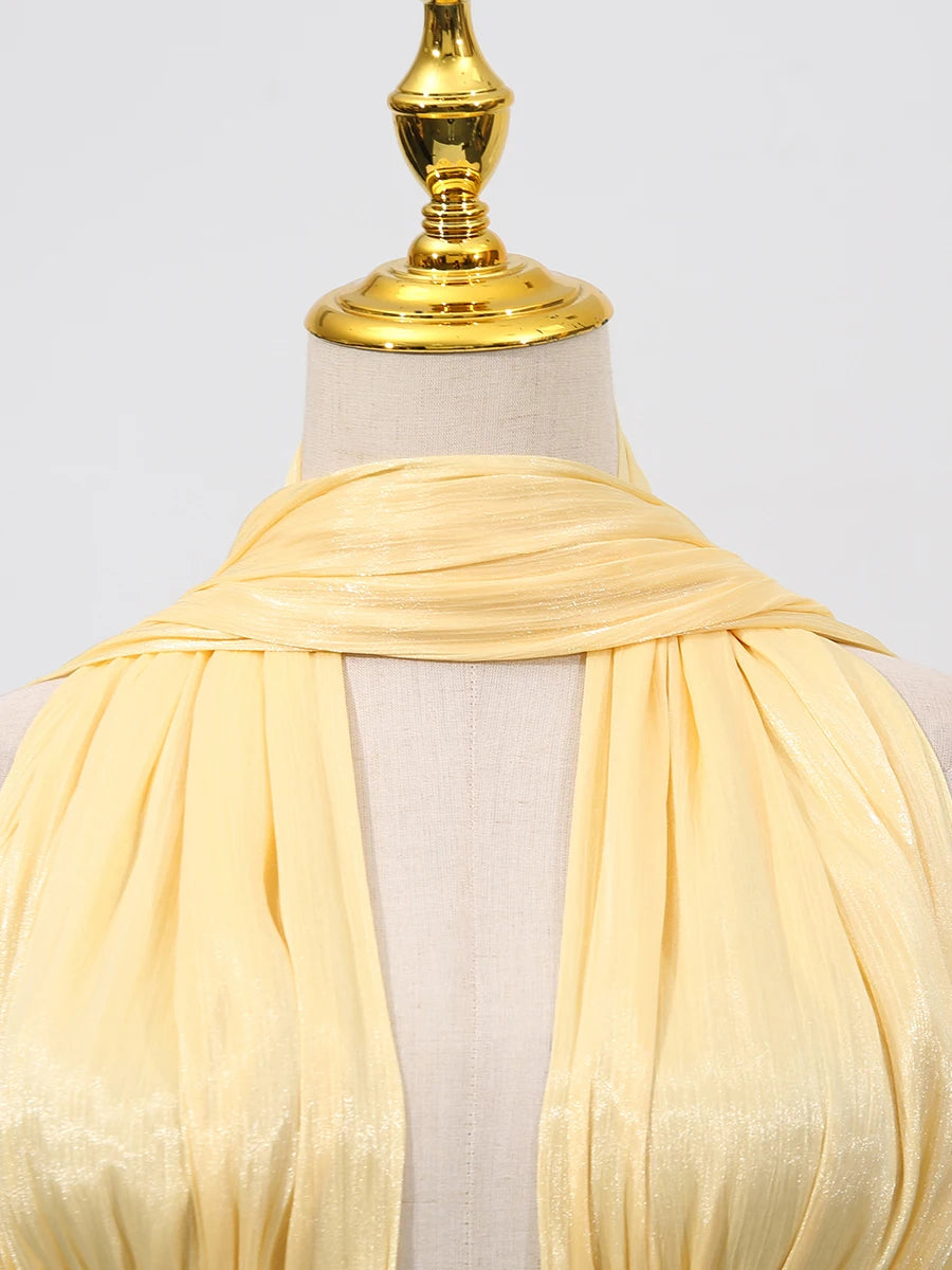 Trend4us Luxe Fringe Halter Pleated Maxi Dress