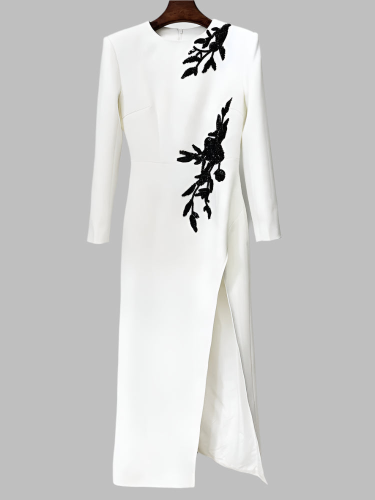 Trend4us Luxe 3D Floral Embellished Slit Maxi Dress