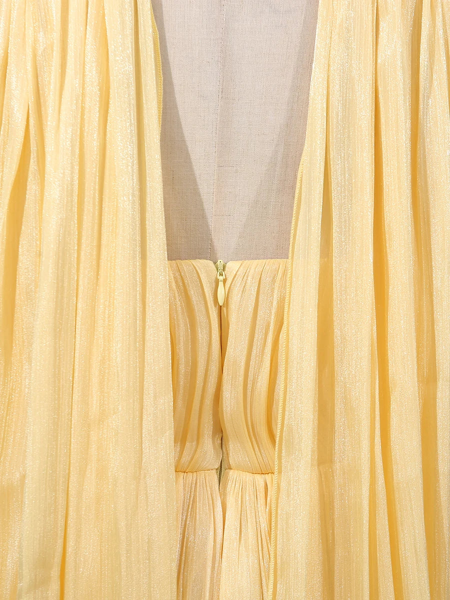 Trend4us Luxe Asymmetrical Ruffle Pleated Dress