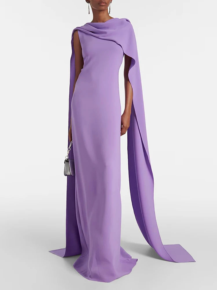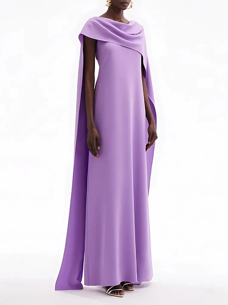 Trend4us Elegant Draped Cape Shoulder Maxi Dress