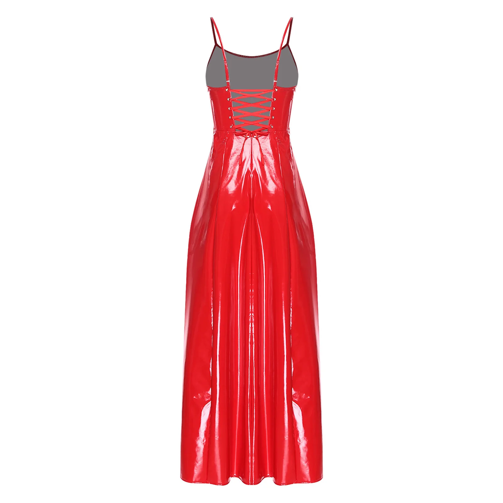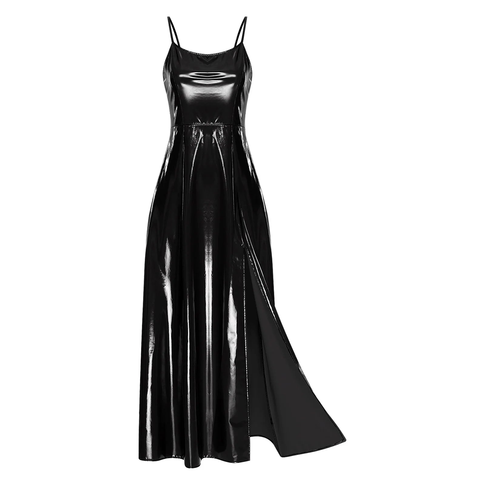 Step into the spotlight with the Trend4us Sleek Glossy Lace-Up Back Slit Maxi Dress—a bold statement piece designed to captivate. Crafted from high-shine glossy faux leather, this maxi dress sculpts the body with a smooth, curve-enhancing fit. The delicate spaghetti straps and clean neckline balance elegance, while the lace-up back adds a touch of allure and adjustable comfort. Finished with a side slit for ease of movement and dramatic flair, this dress is perfect for nights out, special events, or elevated party looks.