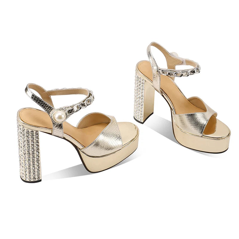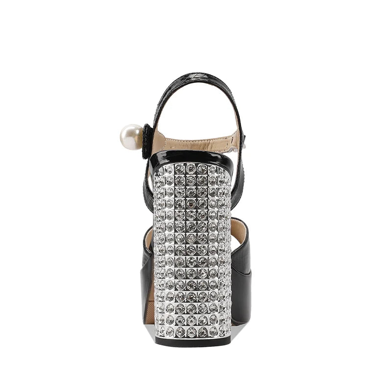 Step into elegance with the Trend4us Embossed Crystal Heel Sandals. Featuring a sophisticated embossed design paired with sparkling crystal accents, these heels offer both style and refinement. Crafted for comfort and durability, they elevate any outfit with a touch of glamour, perfect for formal occasions or upscale events.