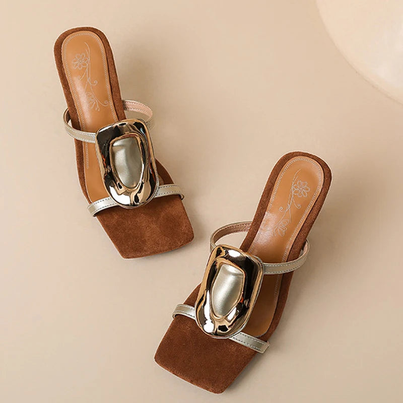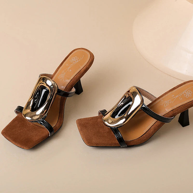 Make a modern statement with the Trend4us Sculpted Buckle Strap Heeled Sandals. Featuring bold architectural heels, wide sculpted straps, and oversized metallic buckle accents, these sandals combine fashion-forward design with confident elegance. The open-toe silhouette and ankle support make them ideal for upscale events, night-outs, or adding edge to minimalist looks.