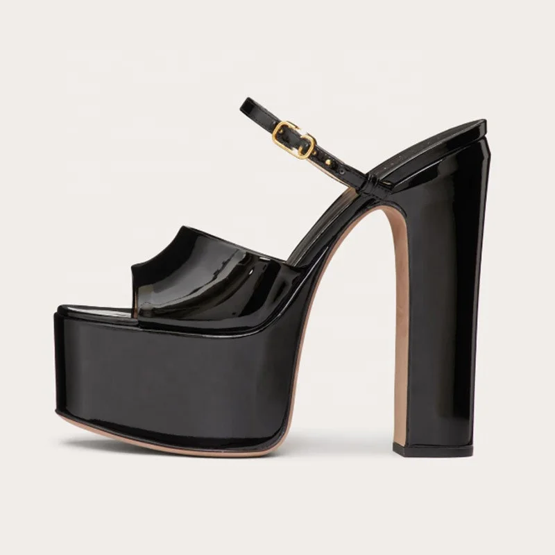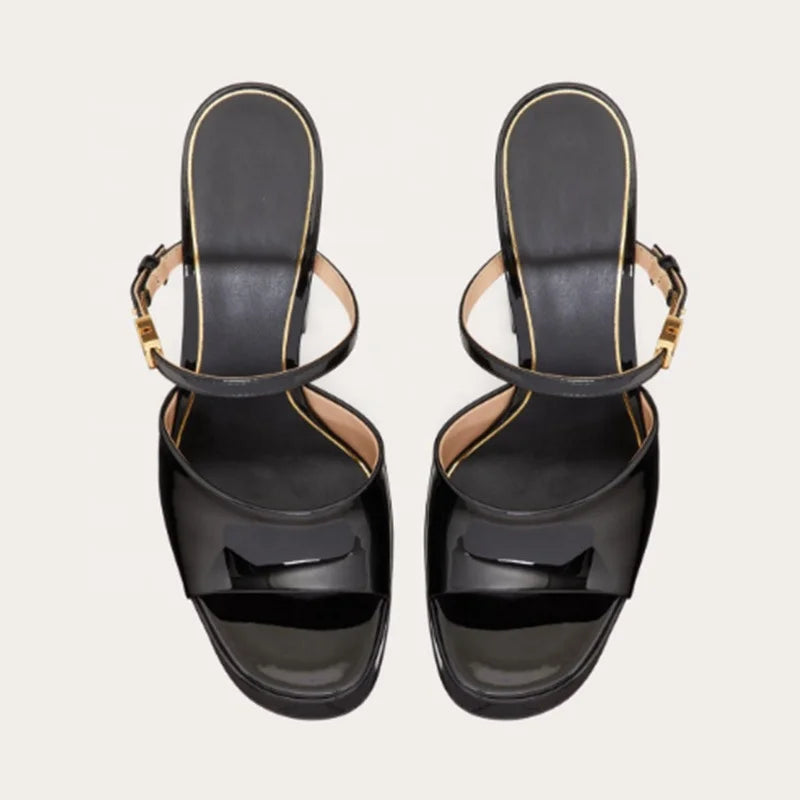 Trend4us Women’s Patent Platform Block Heel Sandals