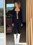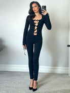 This striking two-piece set delivers contemporary edge through its signature lace-up detailing, designed for those seeking bold, fashion-forward pieces. The coordinated silhouette maintains refined proportions while offering styling flexibility—wear the pieces together for maximum impact or separately to extend your wardrobe versatility. Premium construction and thoughtful detailing ensure this set functions as a versatile investment piece, equally suited to layered looks or standalone statements. Modern sophistication meets wearable confidence in every wear.
