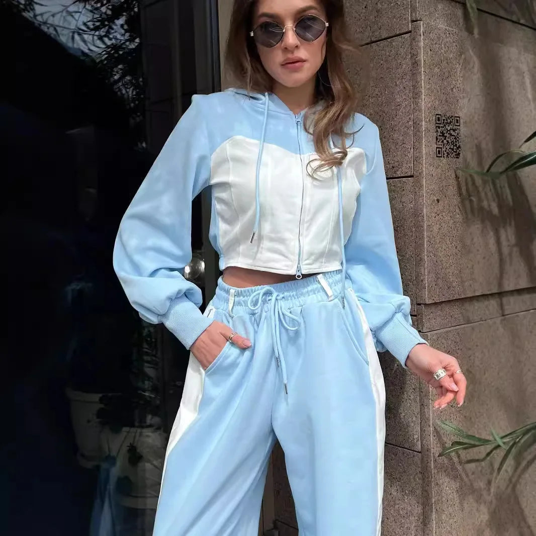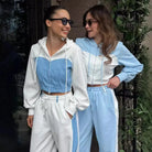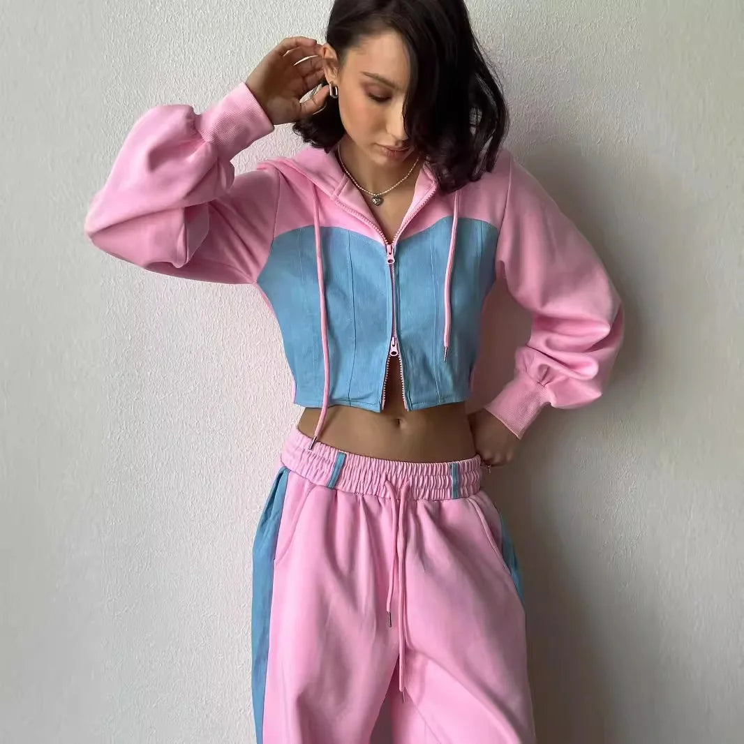 Unwind in style with the Trend4us Chill Mode Colorblock Lounge Set. This eye-catching two-piece features a cropped zip-up hoodie and relaxed wide-leg pants designed with bold colorblock panels that bring a fresh, sporty edge to your off-duty look. The soft, breathable fabric ensures all-day comfort, while the elastic drawstring waistband adds ease and flexibility. Whether you're chilling at home, running errands, or stepping out with friends, this set is your go-to for cozy confidence and laid-back flair.