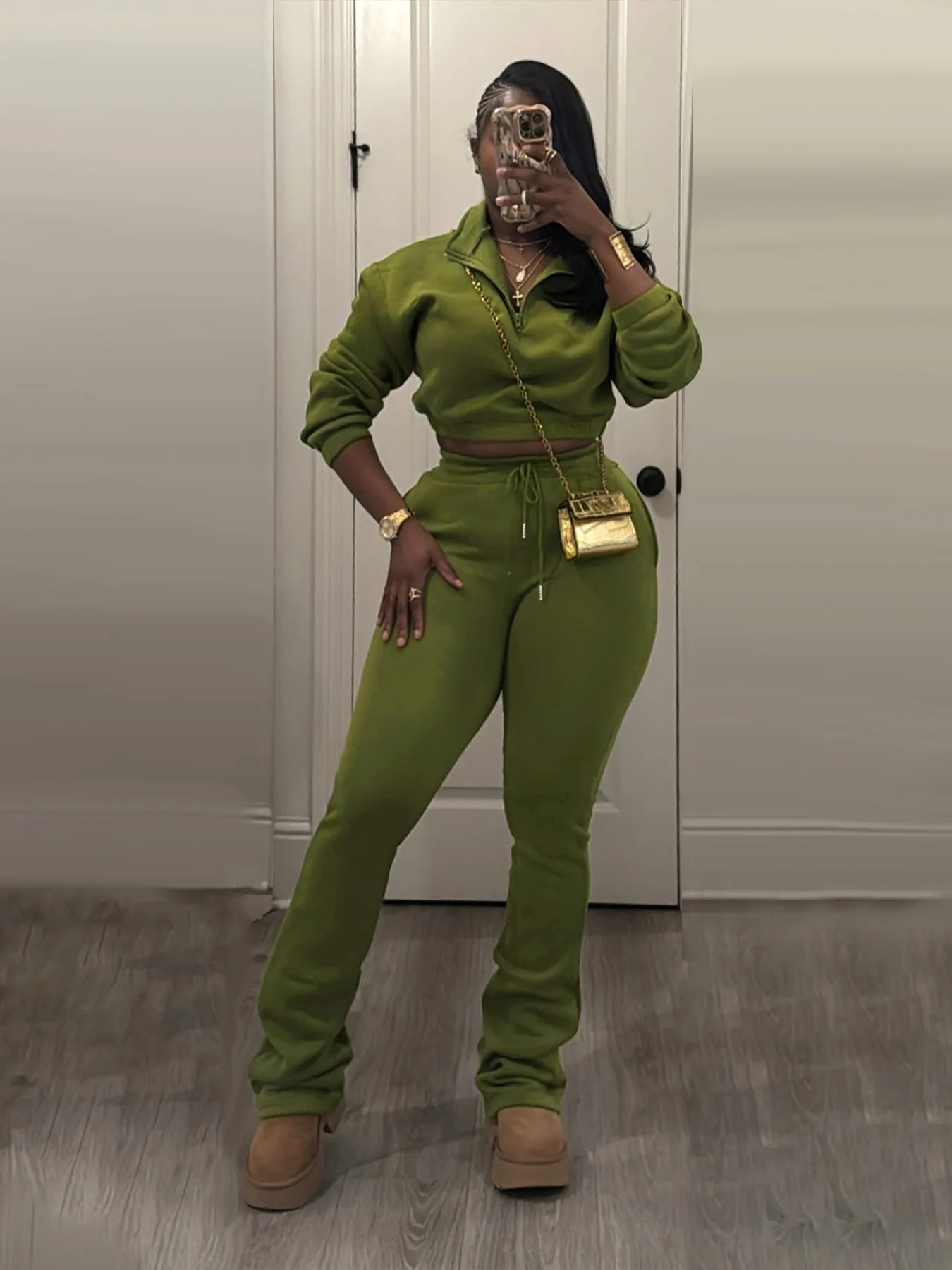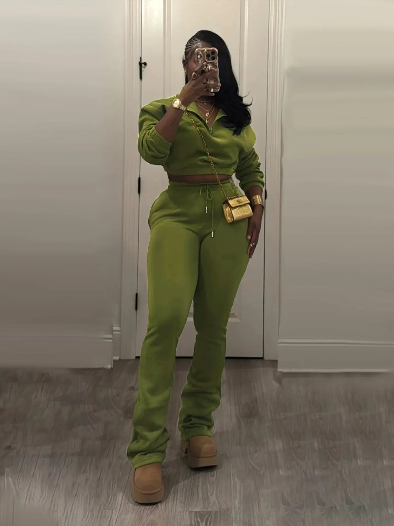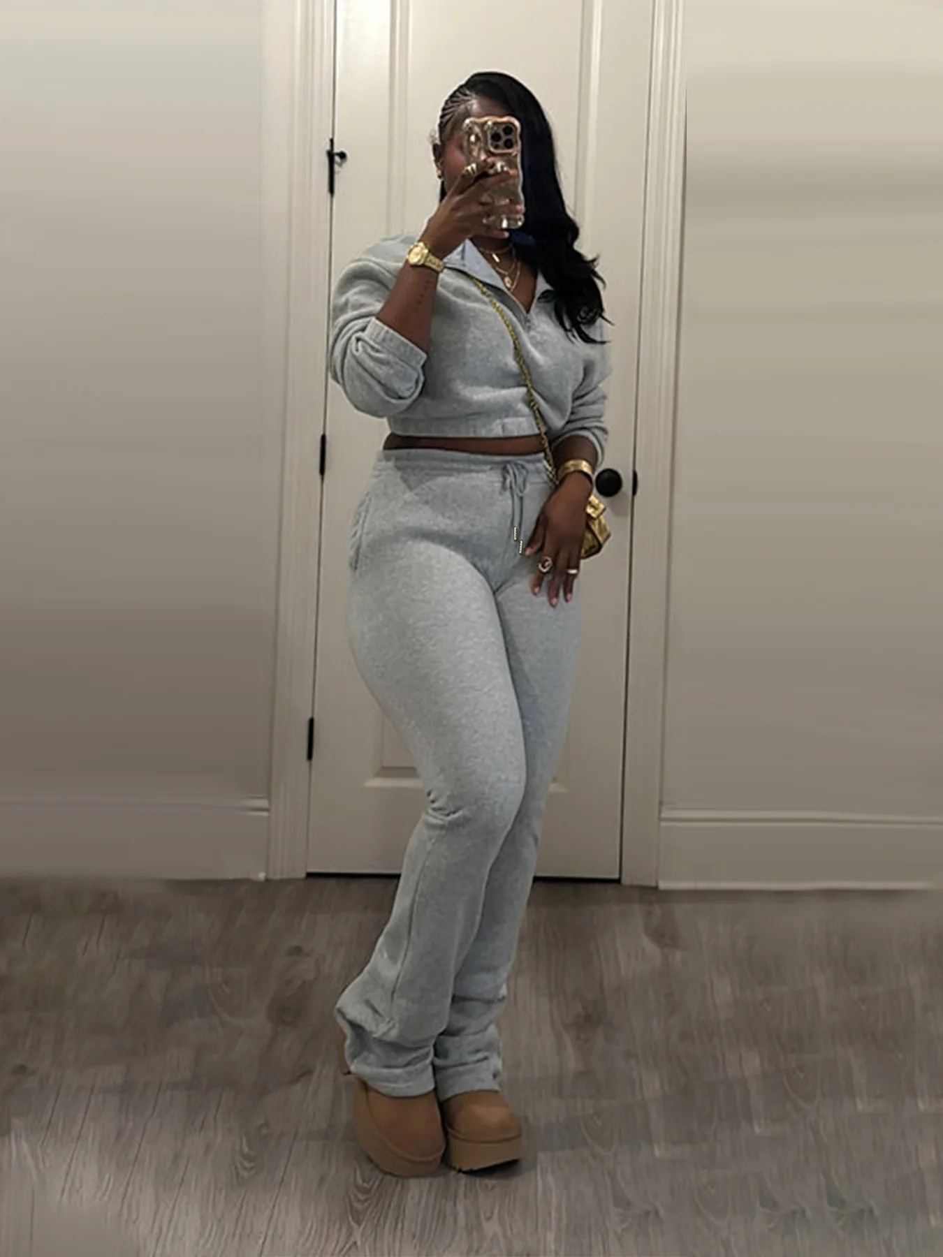 Elevate your everyday style with the Trend4us Classic Half-Zip Crop Sweatshirt & Flare Jogger Set — the perfect balance of comfort, structure, and modern edge. Designed to sculpt while staying ultra-comfortable, this two-piece set features a cropped half-zip sweatshirt with a relaxed fit and high-waisted flare joggers that elongate the legs effortlessly.