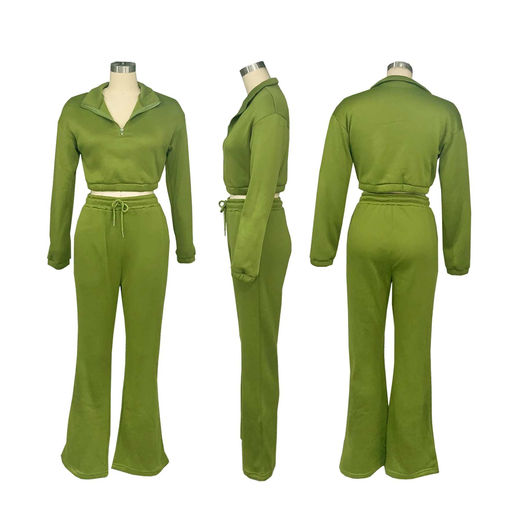 Trend4us Classic Half-Zip Crop Sweatshirt & Flare Jogger Set