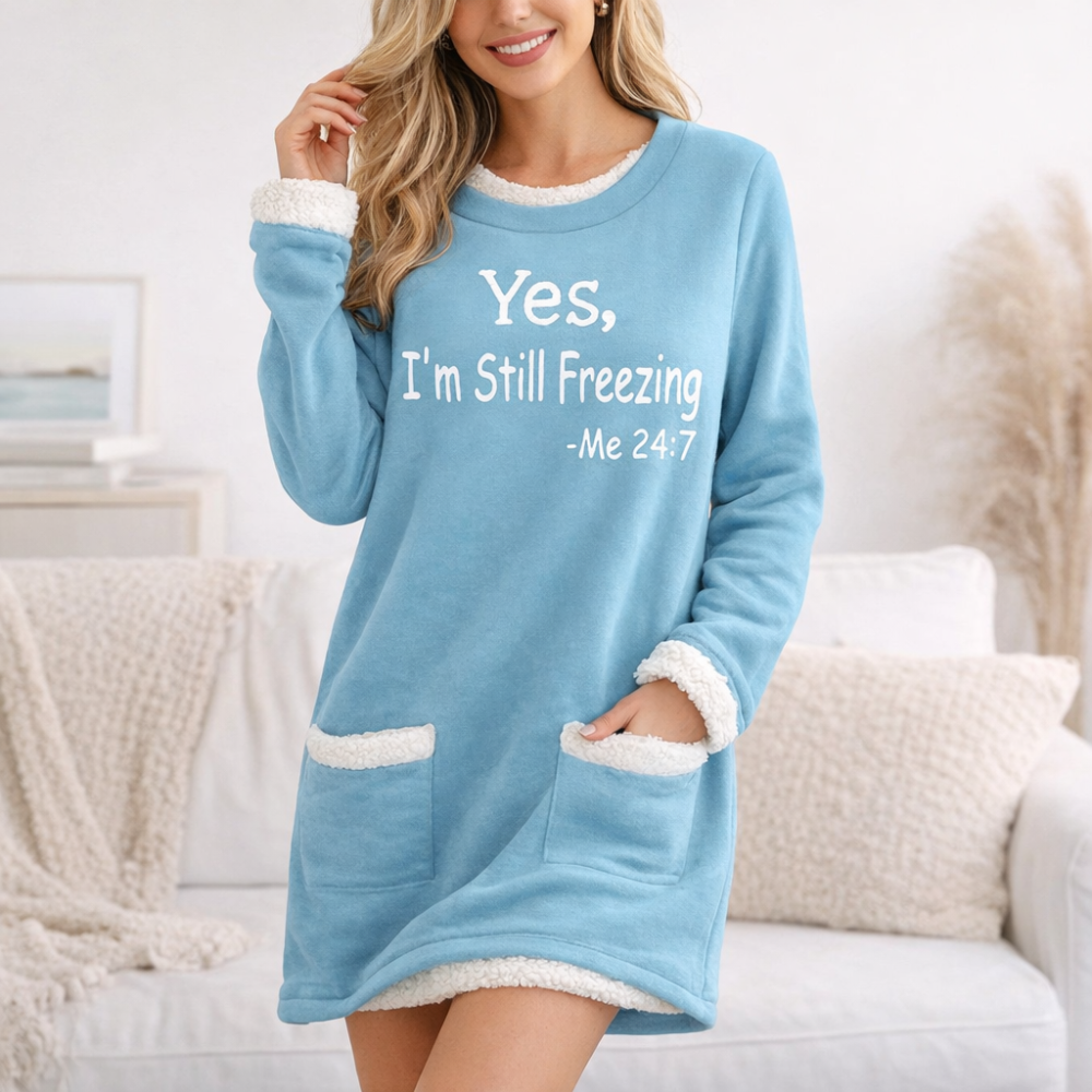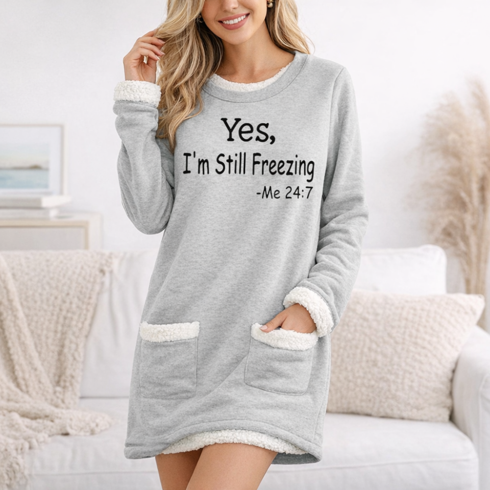 Wrap yourself in ultimate warmth and effortless humor with the Trend4us Cozy Sherpa-Lined Graphic Sweatshirt. Designed for cold days and cozy nights, this ultra-soft sweatshirt features a plush sherpa lining that delivers instant warmth while keeping the look relaxed and playful. The classic crew neckline and long sleeves make it an easy everyday essential, while the charming graphic adds a touch of personality to your winter wardrobe.