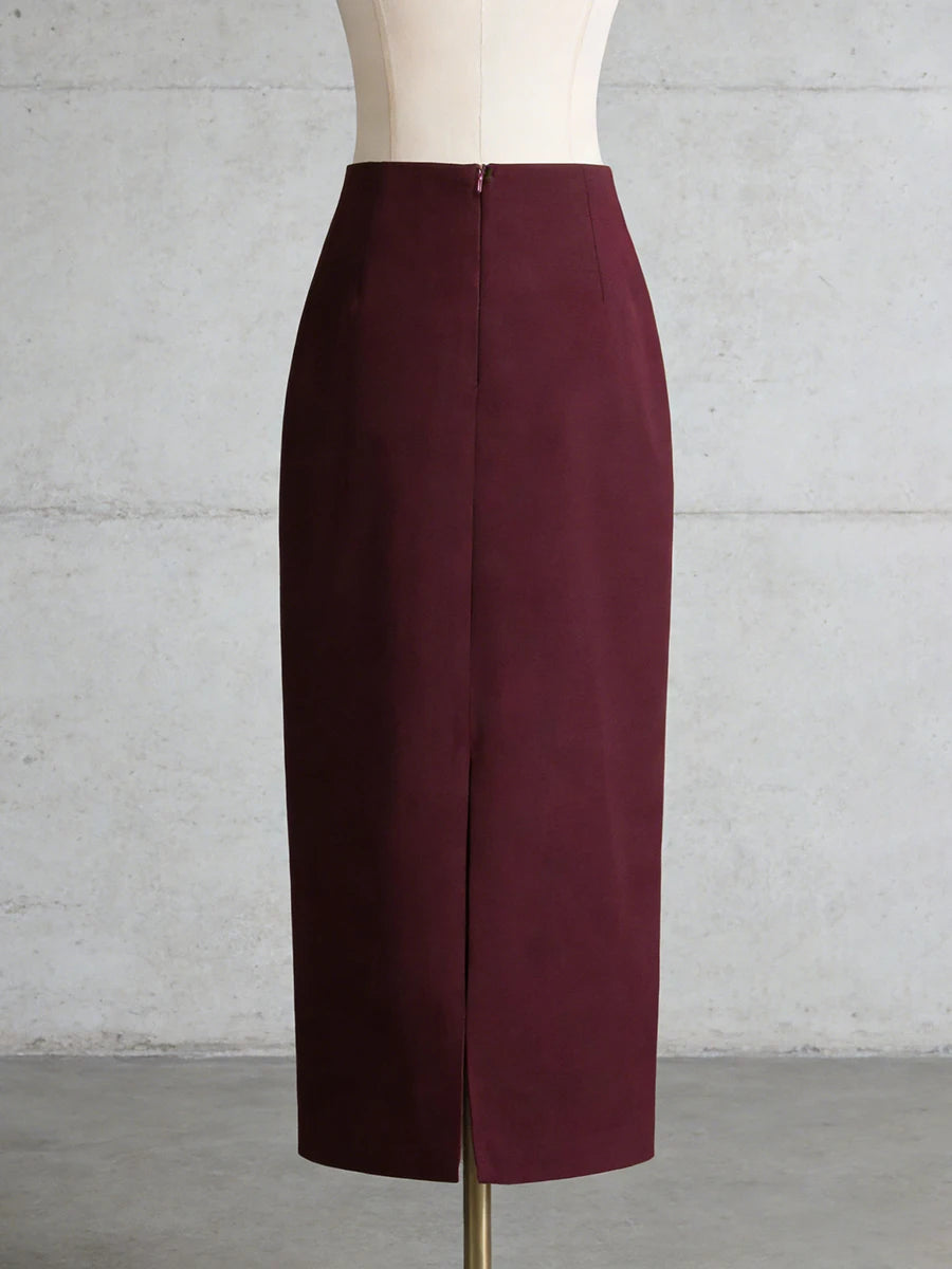 • Flattering A-line pencil skirt hits at mid-calf for timeless sophistication
