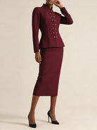 Trend4us Elegant High-Neck Blazer & Pencil Skirt Set