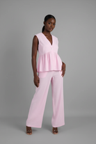 Trend4us Elegant V-Neck Peplum Top & Wide-Leg Pants Set