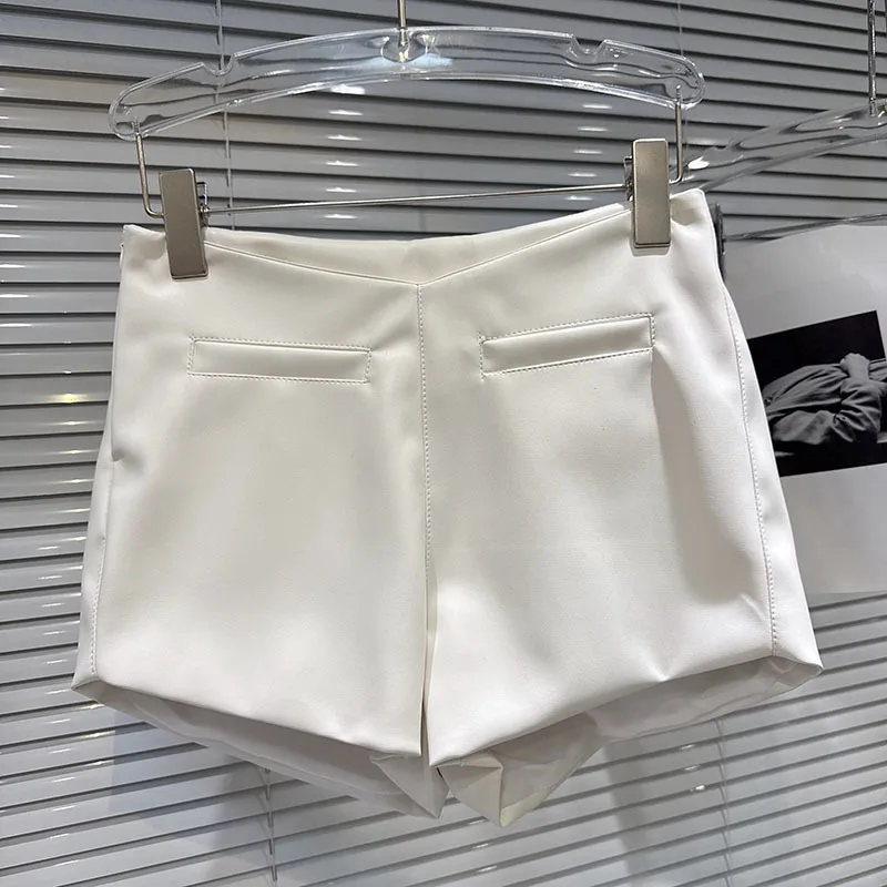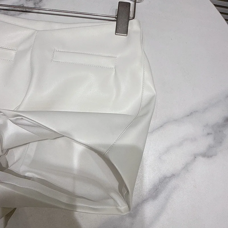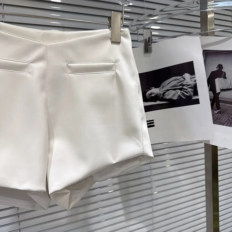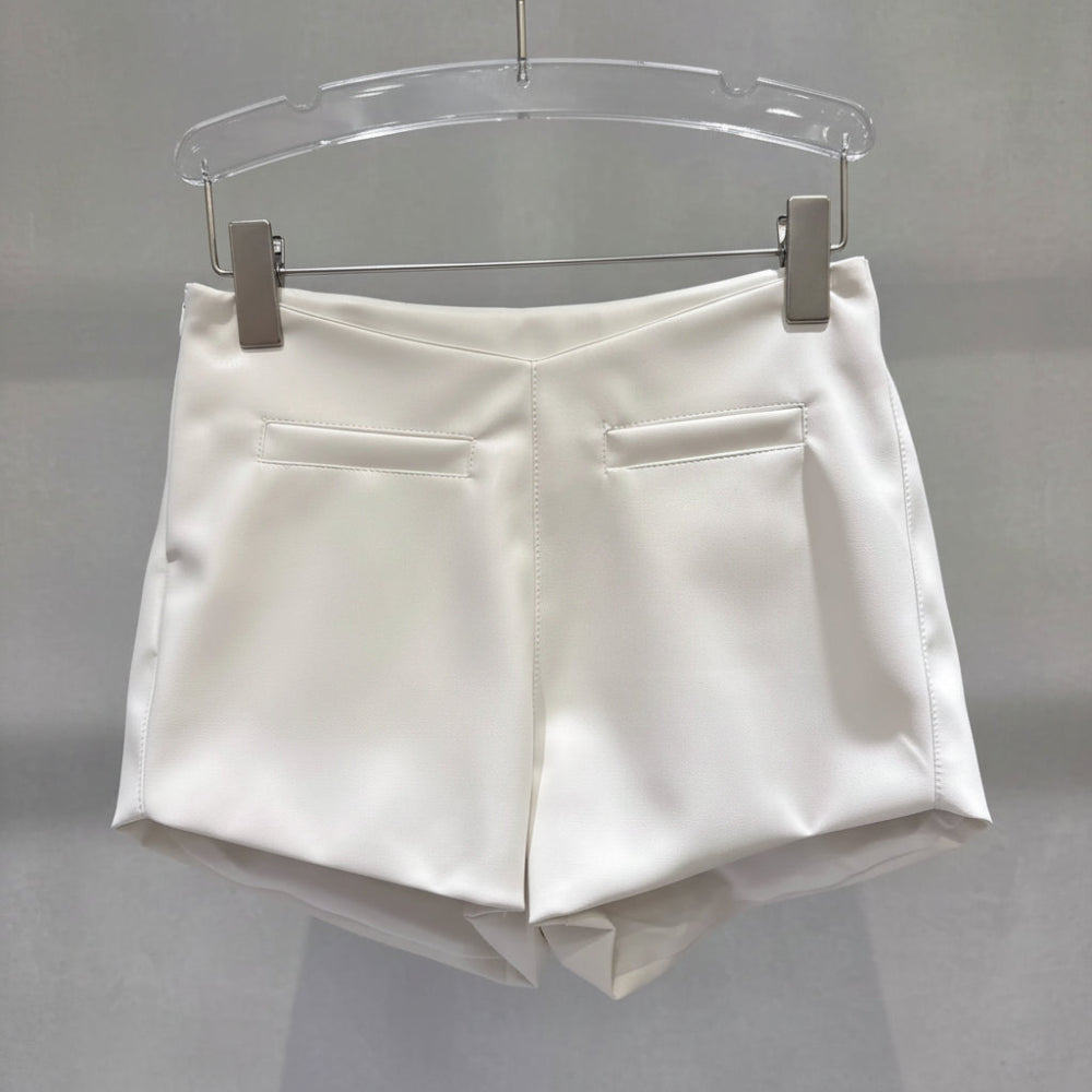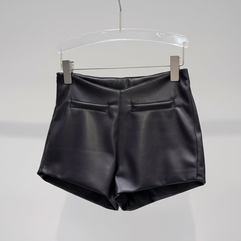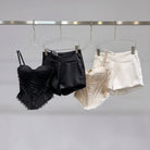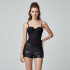 The corset top features intricate lace detailing with supportive shaping seams, adjustable straps, and a sculpting fit that enhances the waist and bust. Finished with refined trim, it delivers a luxe, lingerie-inspired feel elevated for night-out wear. The matching high-waisted shorts are crafted in smooth faux leather, offering a flattering fit with a polished, party-ready finish.