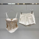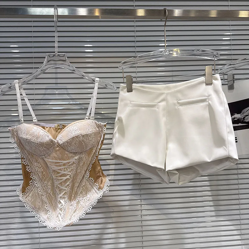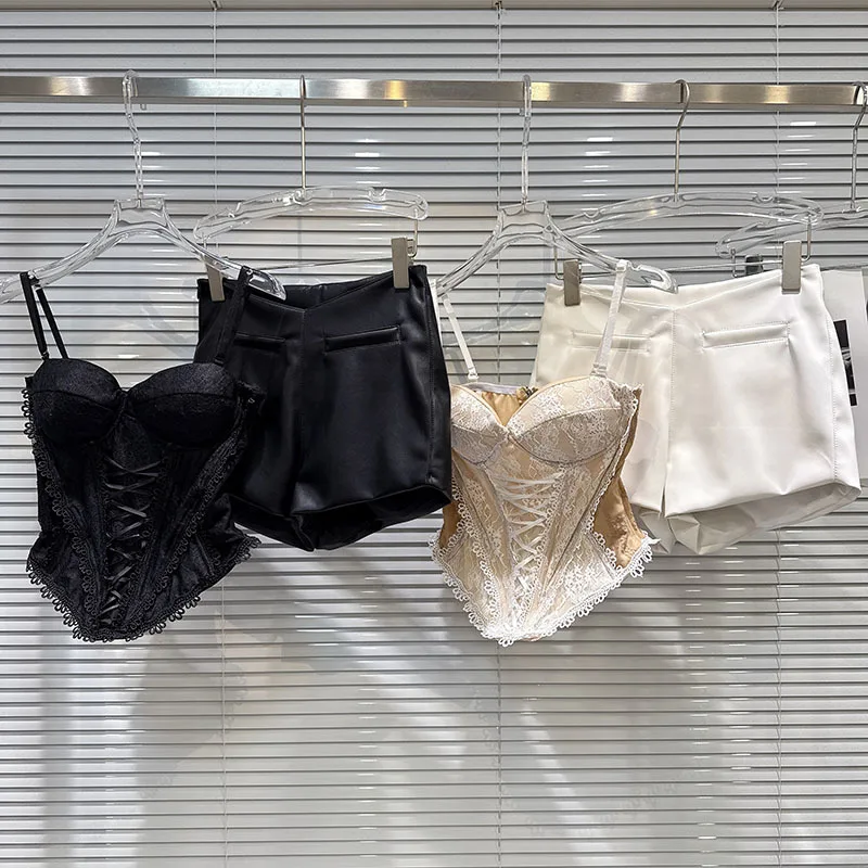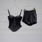 Trend4us Luxe Lace Corset & Leather Shorts Set