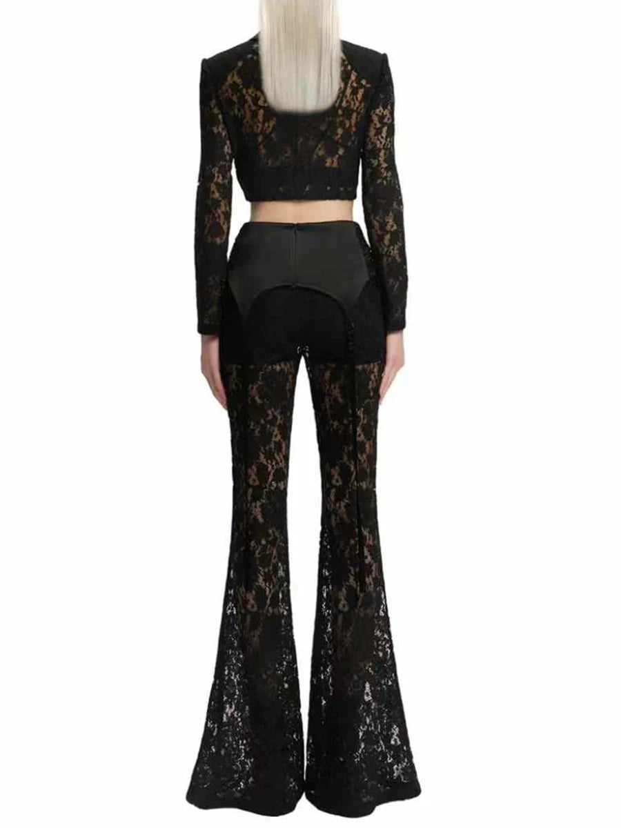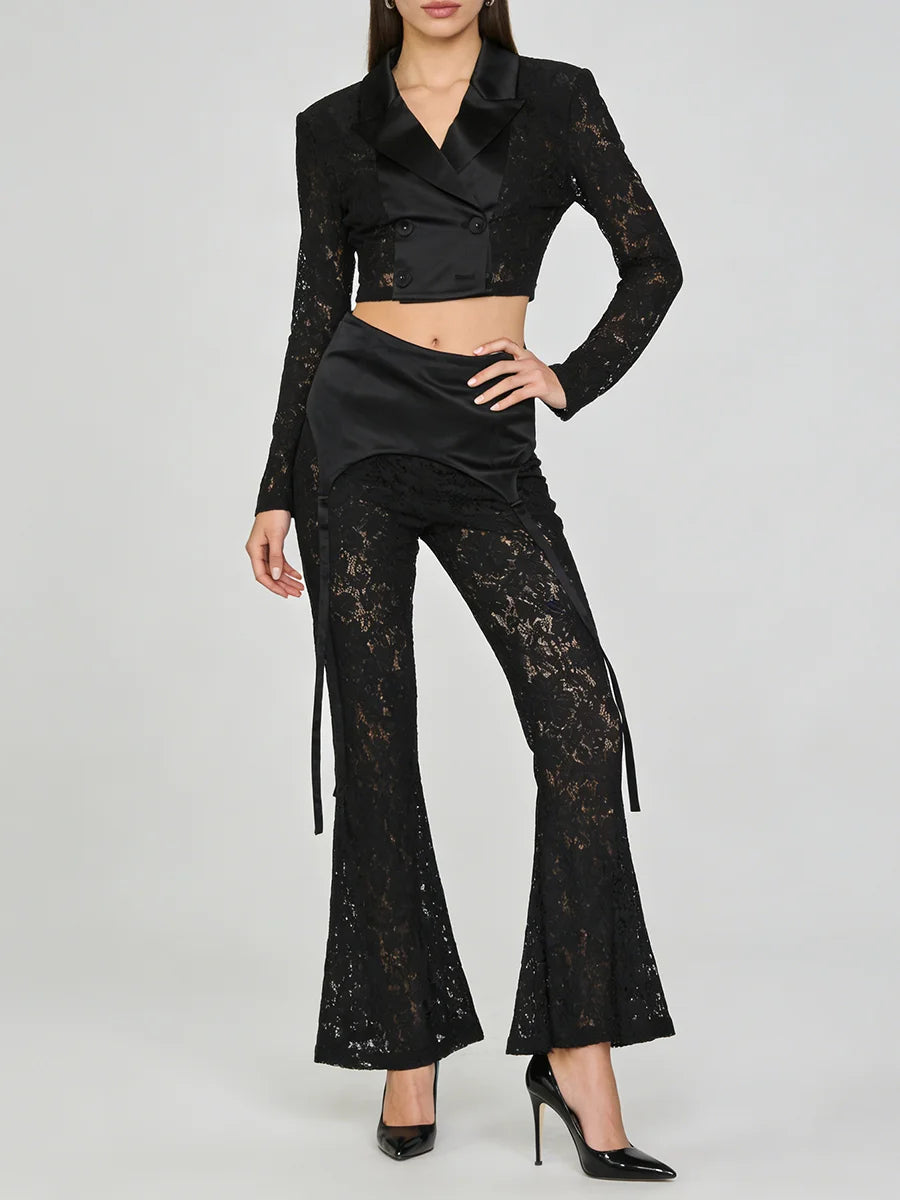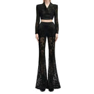 Trend4us Luxe Lace Flare Pants & Cropped Blazer Set