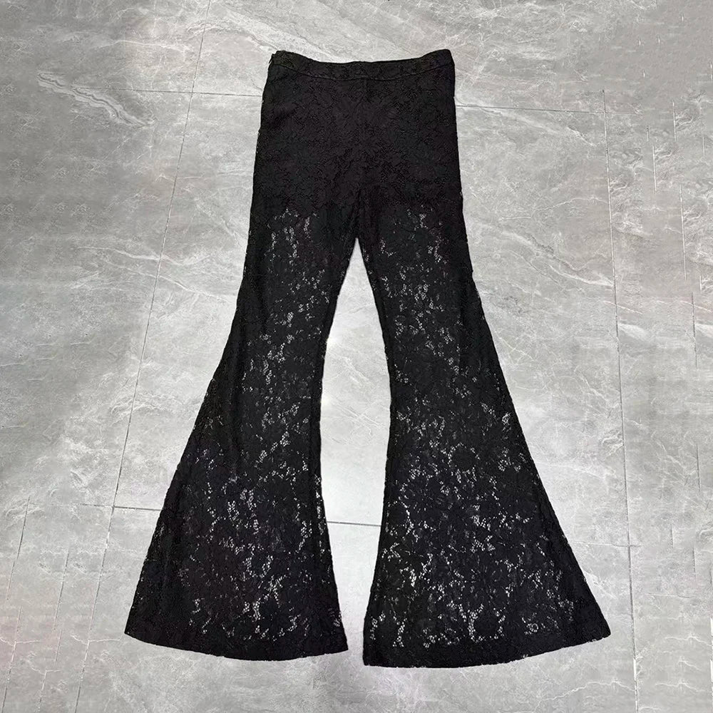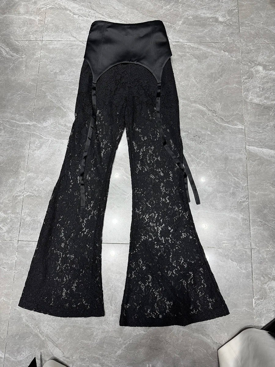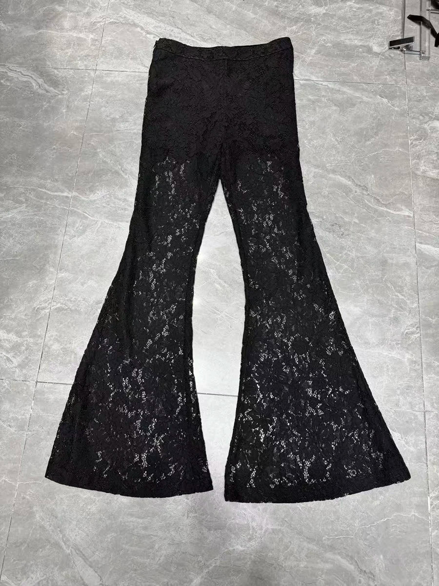 Pants: High-waisted flare with lace detailing