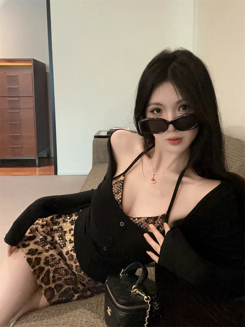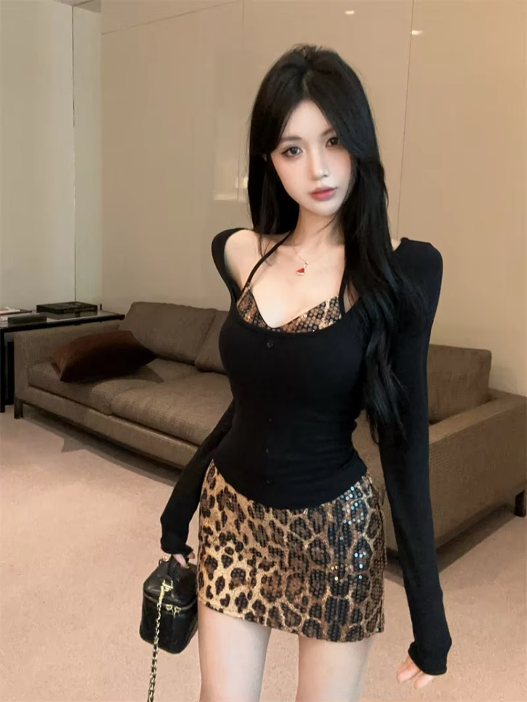 The sequin leopard print catches the light with every movement, while the smooth, sculpting base layer ensures a flattering, confident fit. Designed for party nights, holiday celebrations, and Valentine’s glam moments, this three-piece set delivers a powerful, fashion-forward look that feels as luxe as it looks.