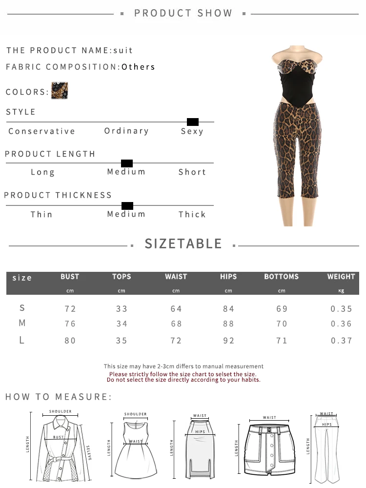 Unleash bold glamour with the Trend4us Luxe Leopard Sequin Bustier Top & Capri Pants Set, designed to turn heads from every angle. This striking two-piece set features a sculpted strapless bustier top with a sweetheart neckline and shimmering leopard sequin cups, perfectly contrasted with a sleek black bodice for a cinched, flattering fit. The matching high-waisted capri pants are crafted in dazzling leopard sequin mesh, offering stretch, shine, and curve-enhancing appeal. Ideal for nights out, parties, or statement clubwear looks, this set delivers confident, luxe style with a fierce edge.