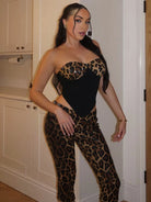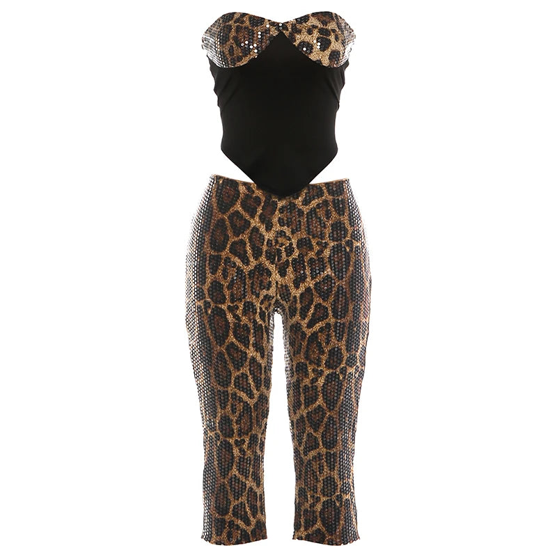 Trend4us Luxe Leopard Sequin Bustier Top & Capri Pants Set